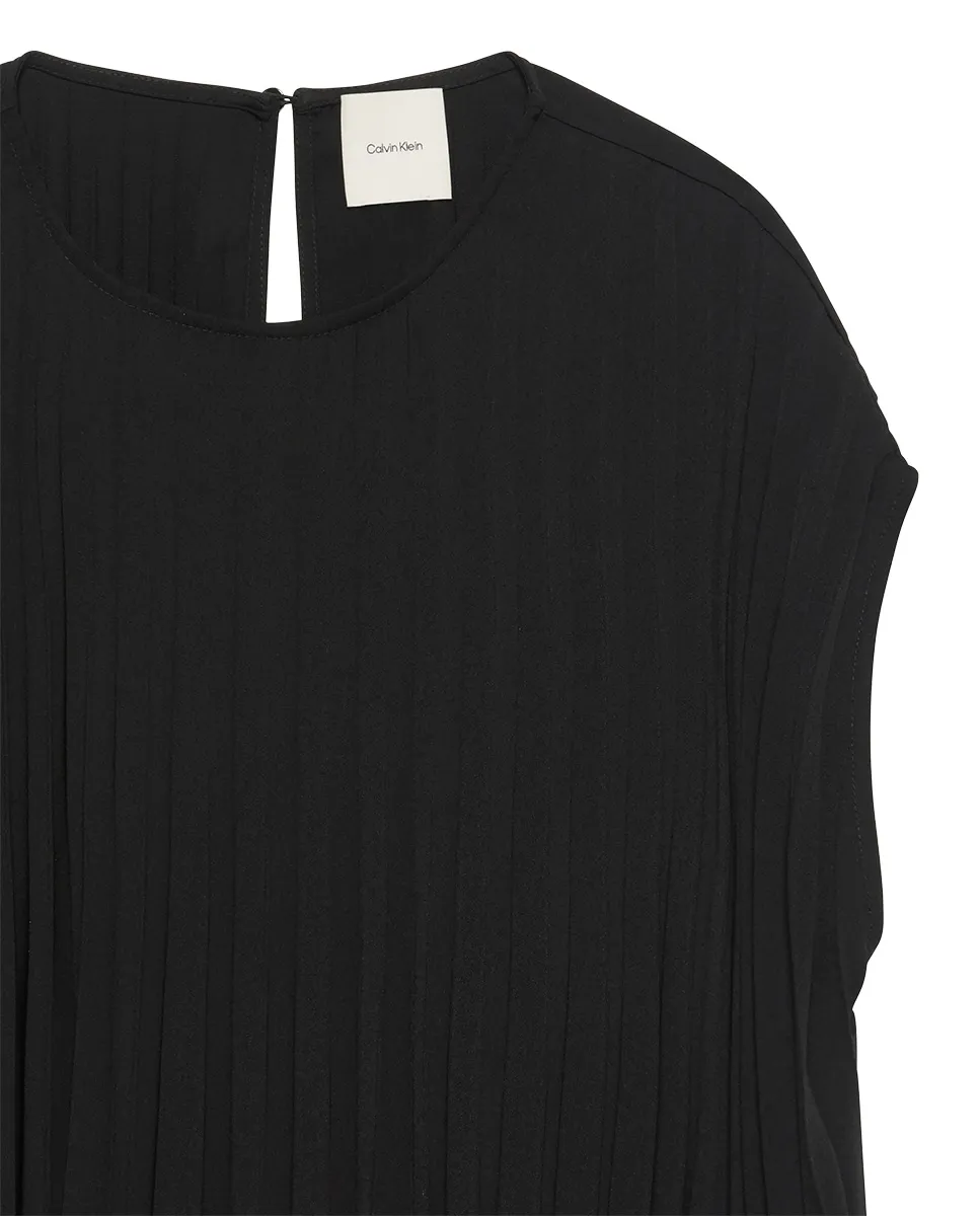 Женская блузка из плиссированного крепа Calvin Klein, изготовленная из 100% полиэстера, без рукавов с круглым вырезом.
