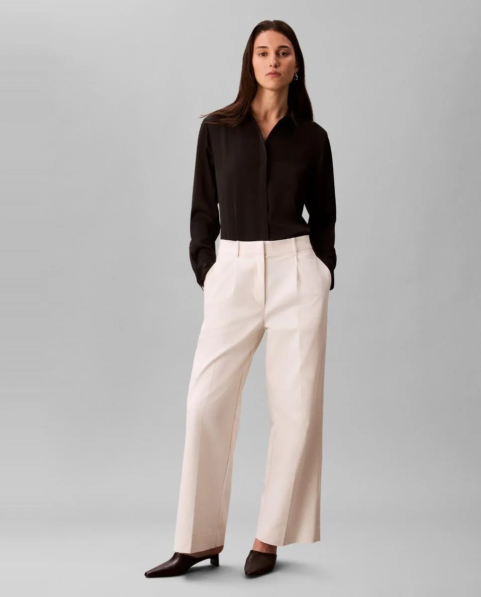 Женская атласная рубашка Calvin Klein, выполненная из 100% полиэстера, с длинными рукавами и скрытыми пуговицами.