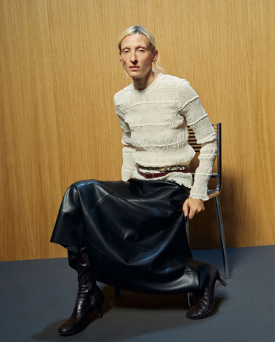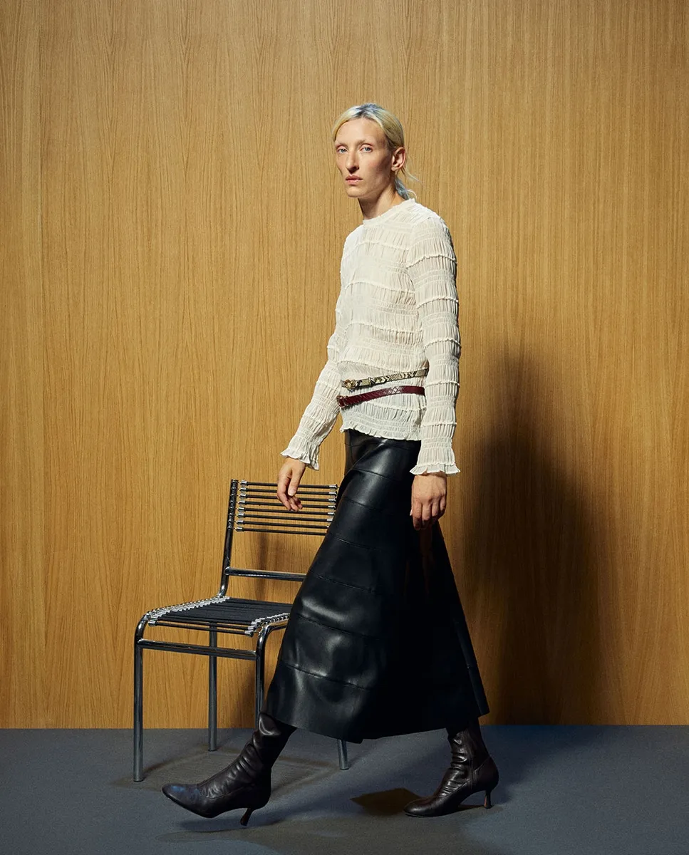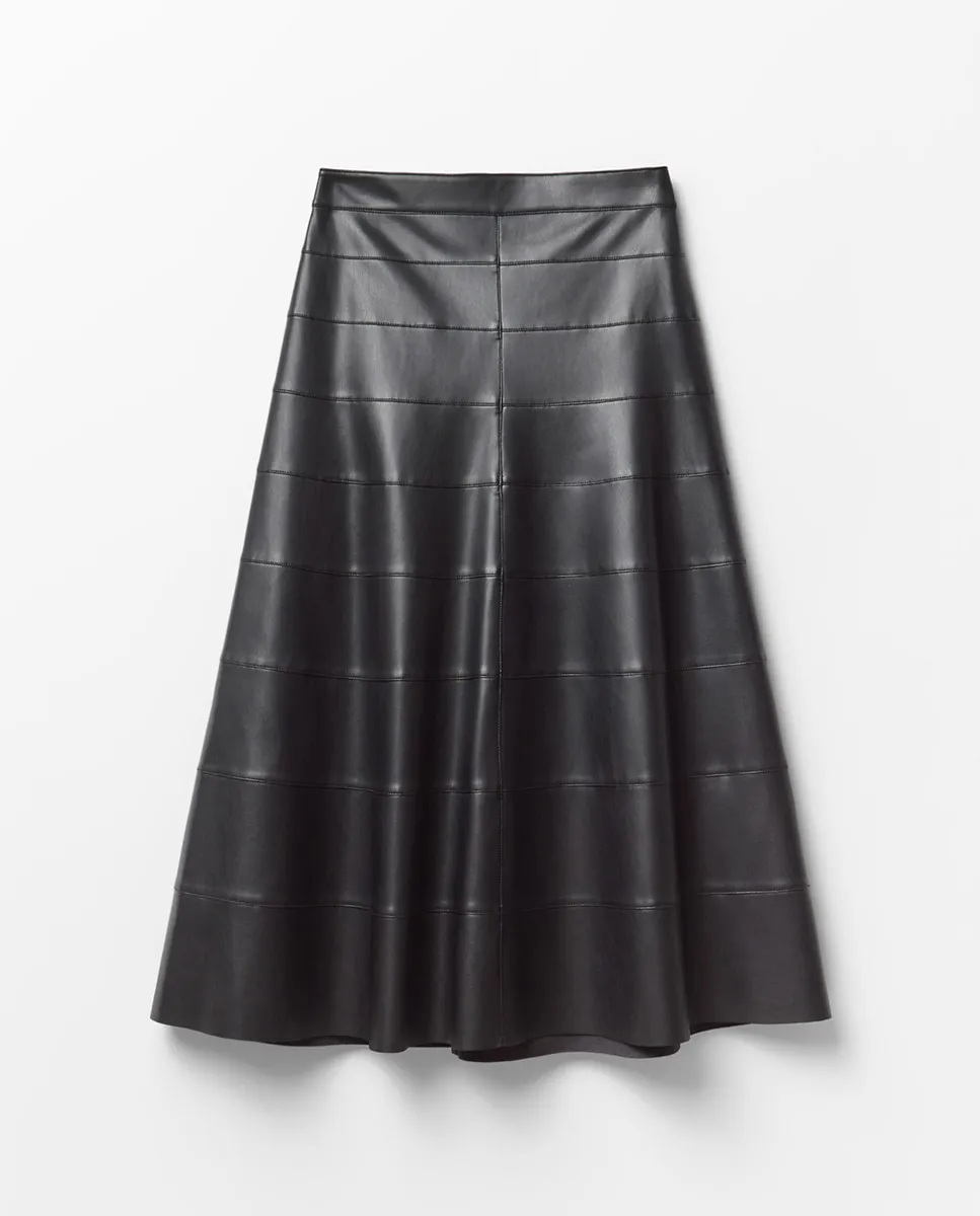 Длинная юбка с эффектом кожи с декоративными разрезами. Задняя застежка-молния