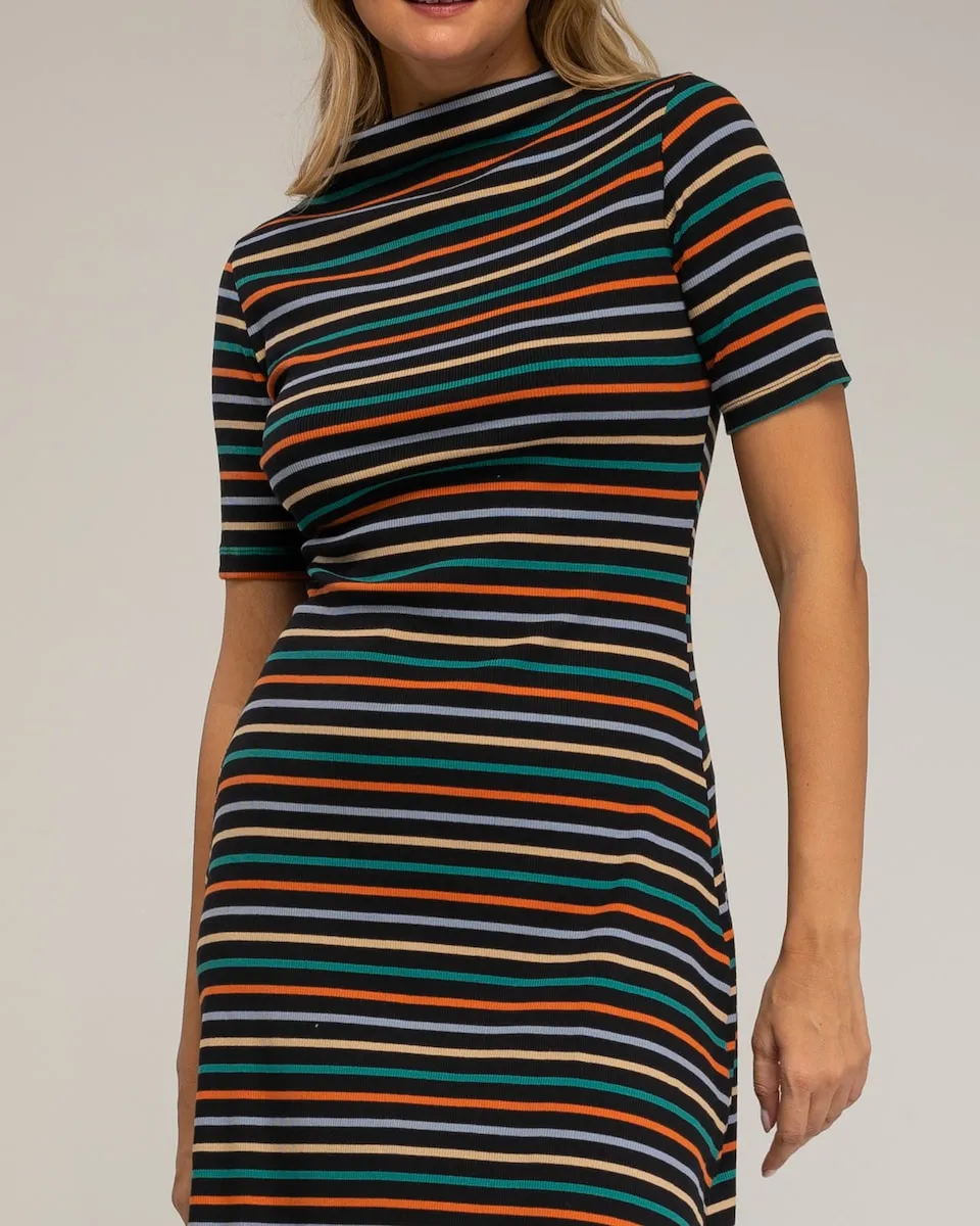 Платье миди в полоску Tantra, черный/оранжевый