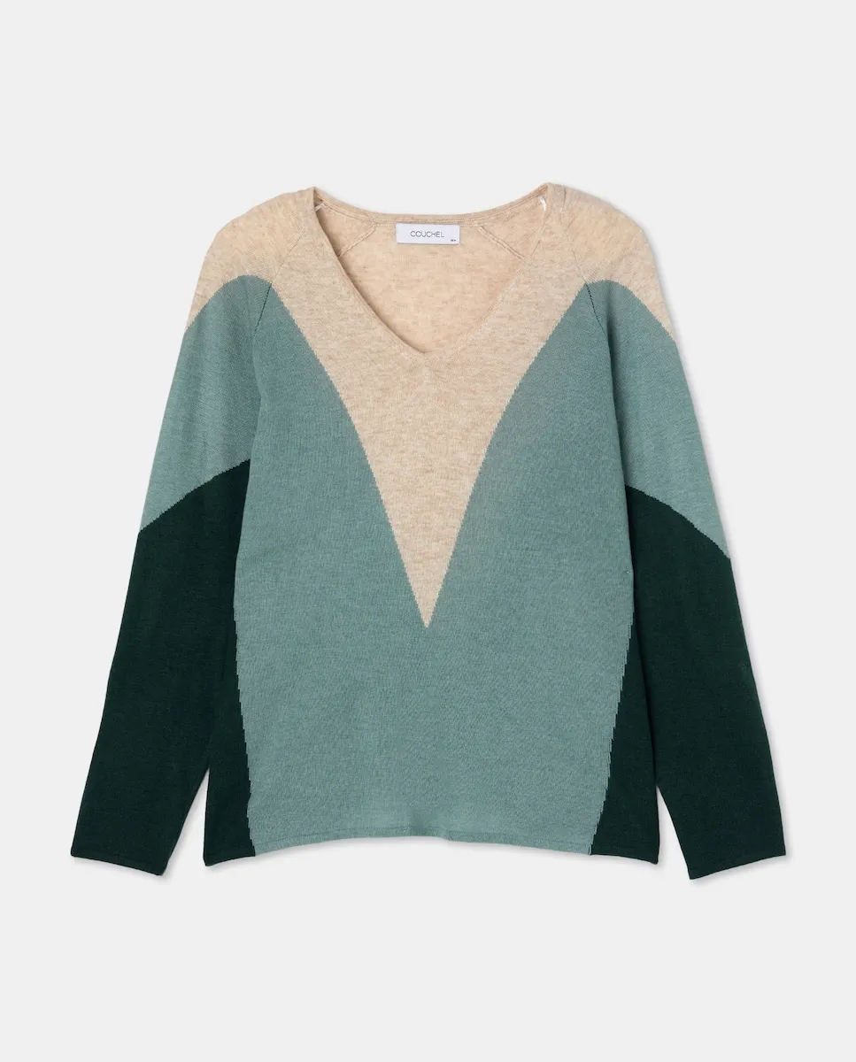 Женский джемпер с V-образным вырезом Couchel, хаки