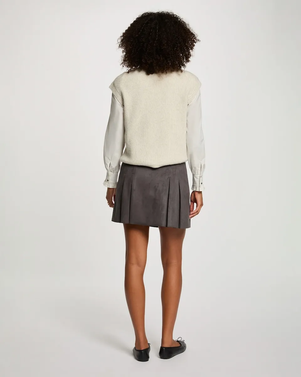 Этот укороченный прямой свитер сочетает элегантность и современность благодаря высокому воротнику, который подчеркивает линию шеи и удлиняет силуэт. Деликатные пуговицы придают этому повседневному изделию изысканность, идеальную для вечного стиля. - Укороченный свитер. - Высокий воротник. - Без рукавов. - Пуговицы.Идеи образа. - Прямой укороченный свитер с высоким воротником хорошо сочетается с легкой блузкой, плиссированной юбкой и балетками для элегантного и структурированного образа.- Этот свитер без рукавов прекрасно подчеркивает высокие зауженные брюки и дополняется тонким ремнем и жесткой сумкой для смелого стиля.Советы по уходу. Стирайте свитер при 30°C в режиме ультраделикатной стирки, чтобы сохранить качество ткани. Рекомендуется гладить его при низкой температуре (максимум 110°) и без пара, так как использование пара крайне не рекомендуется. Кроме того, не используйте сушильную машину, чтобы избежать повреждения волокон.