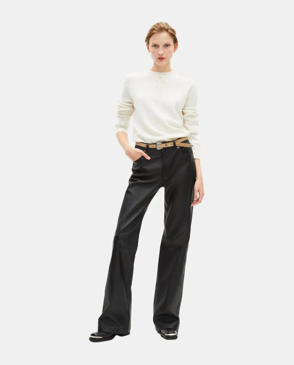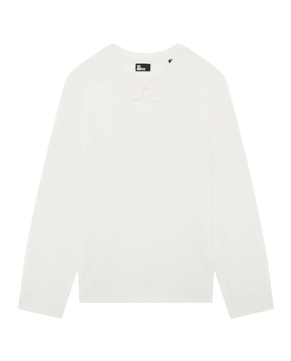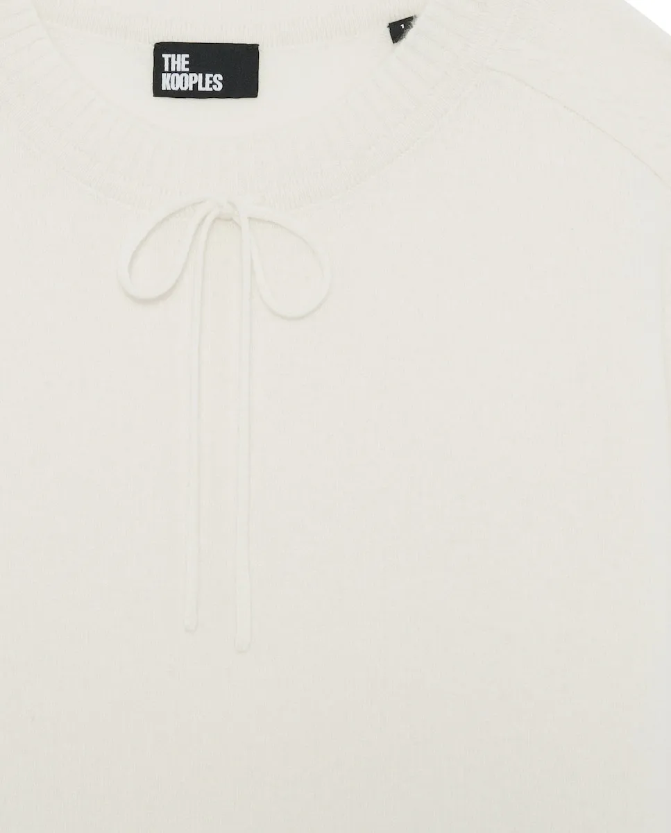 Кашемировый джемпер The Kooples для женщин Прямой крой Круглый вырез с декоративным бантом Длинные рукава Вышивка The Koop в нижней части груди Ребристые края
