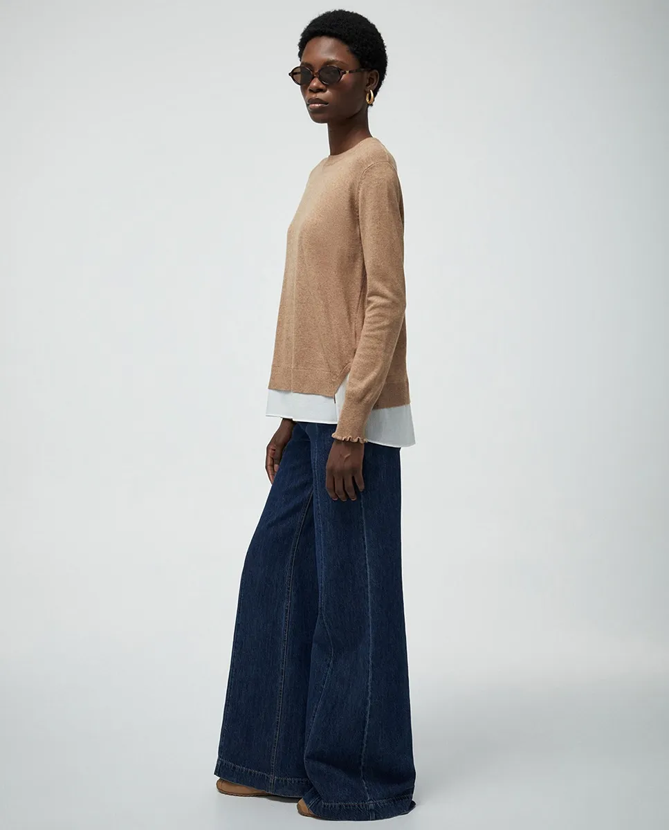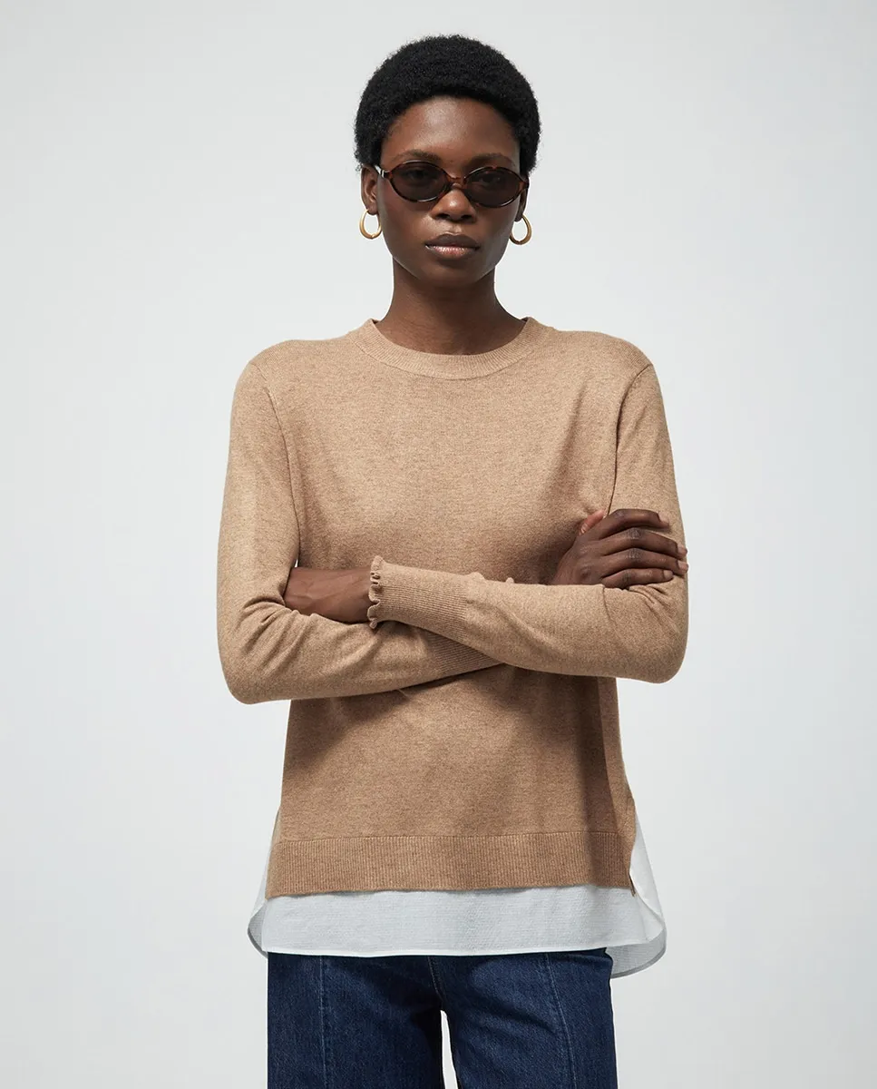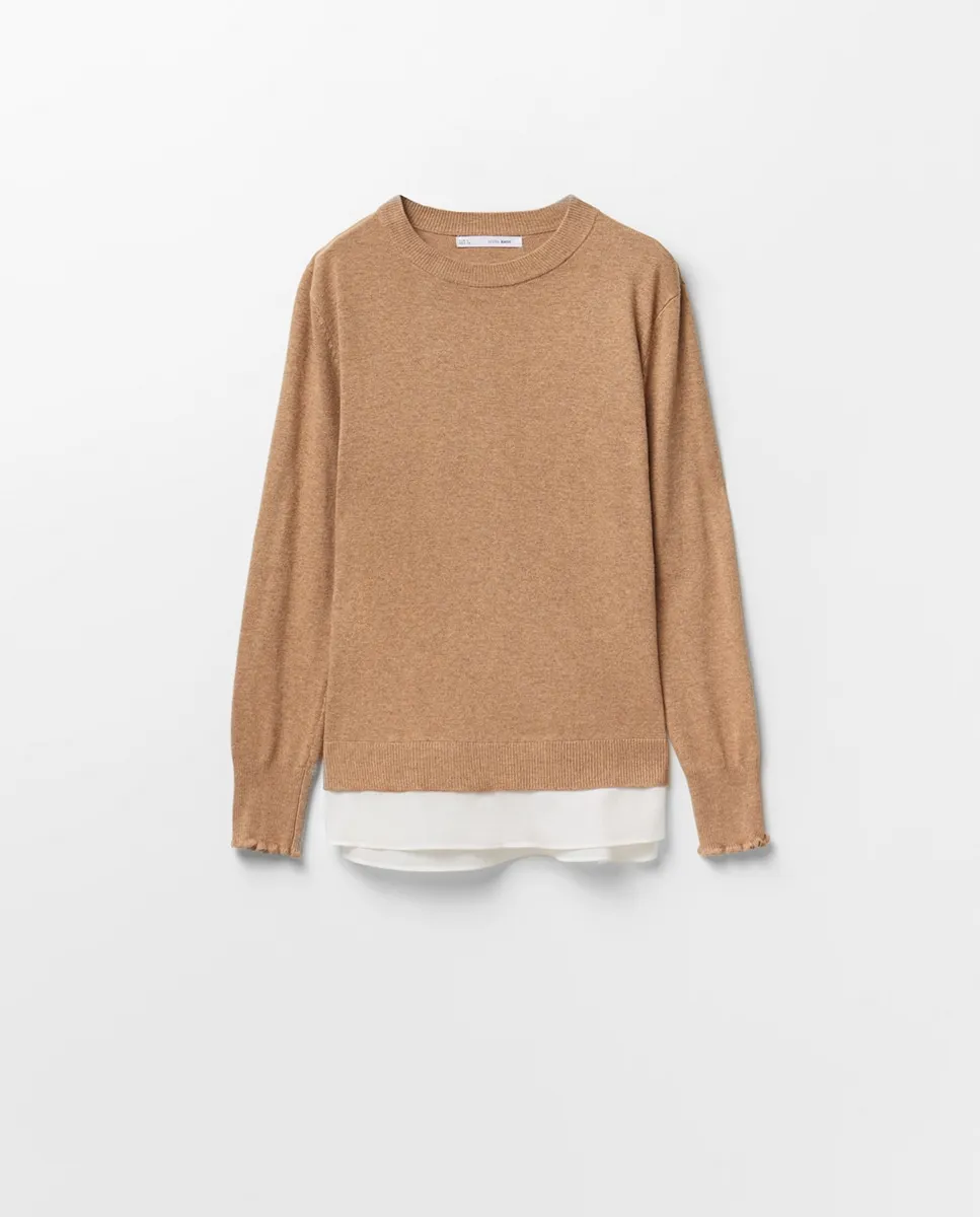 Джемпер с круглым вырезом и длинными рукавами с контрастной отделкой низа