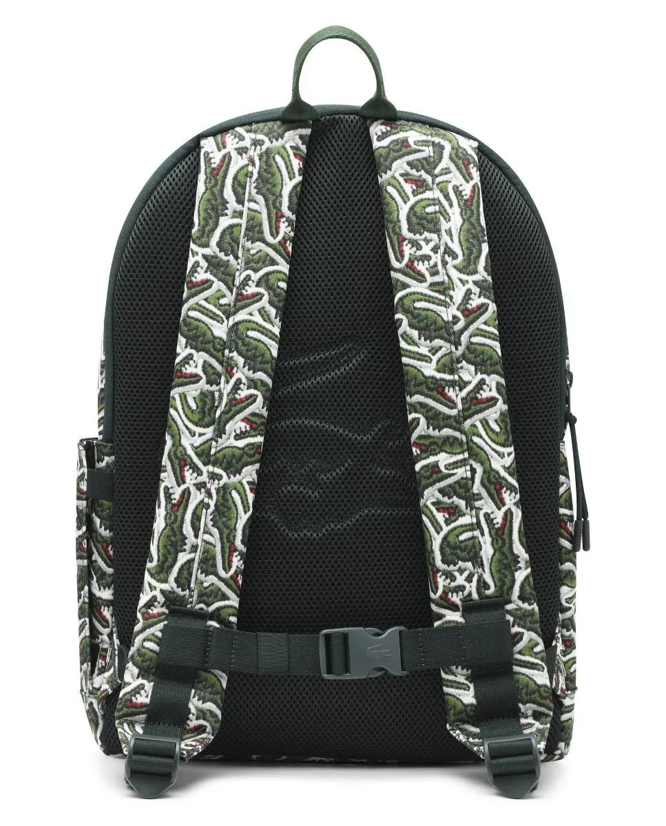 С рельефным принтом крокодилов, играющих в теннис или гольф, плавающих или занимающихся другими развлекательными занятиями, этот рюкзак от Lacoste идеально подходит для повседневного использования. Он изготовлен из прочного переработанного полиэстерового материала и украшен нашивкой с вышитым логотипом крокодила на передней части. Основное отделение имеет внутренний карман из сетки на молнии для хранения мелких вещей, к которым вы хотите быстро и легко получить доступ, а заднее отделение имеет мягкую подкладку для размещения вашего ноутбука или планшета. Переносите напитки в боковом кармане для бутылок, чтобы держать руки свободными, и поддерживайте все свои вещи в порядке с помощью переднего кармана на молнии.