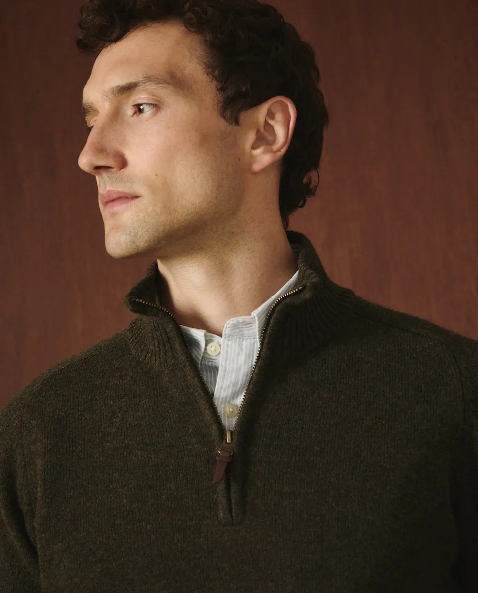 Мужской свитер 100% из детского мериноса с полузастежкой на молнию.