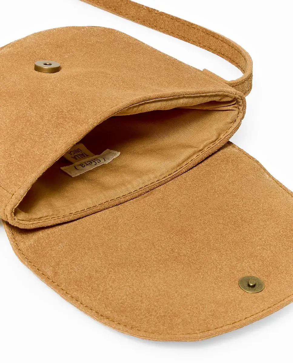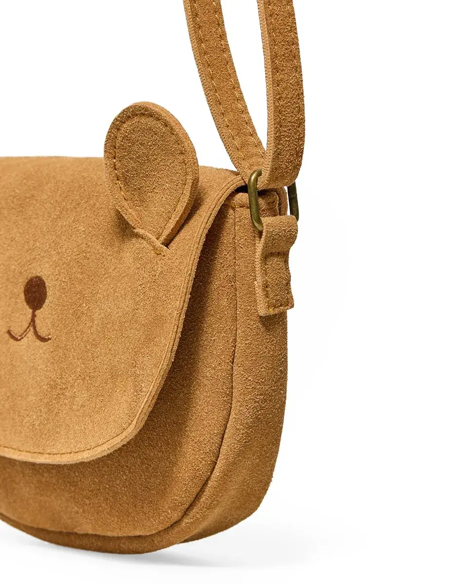 Сумка с лицом в стиле замши с деталями в виде ушек. Регулируемая ручка и магнитная застежка.