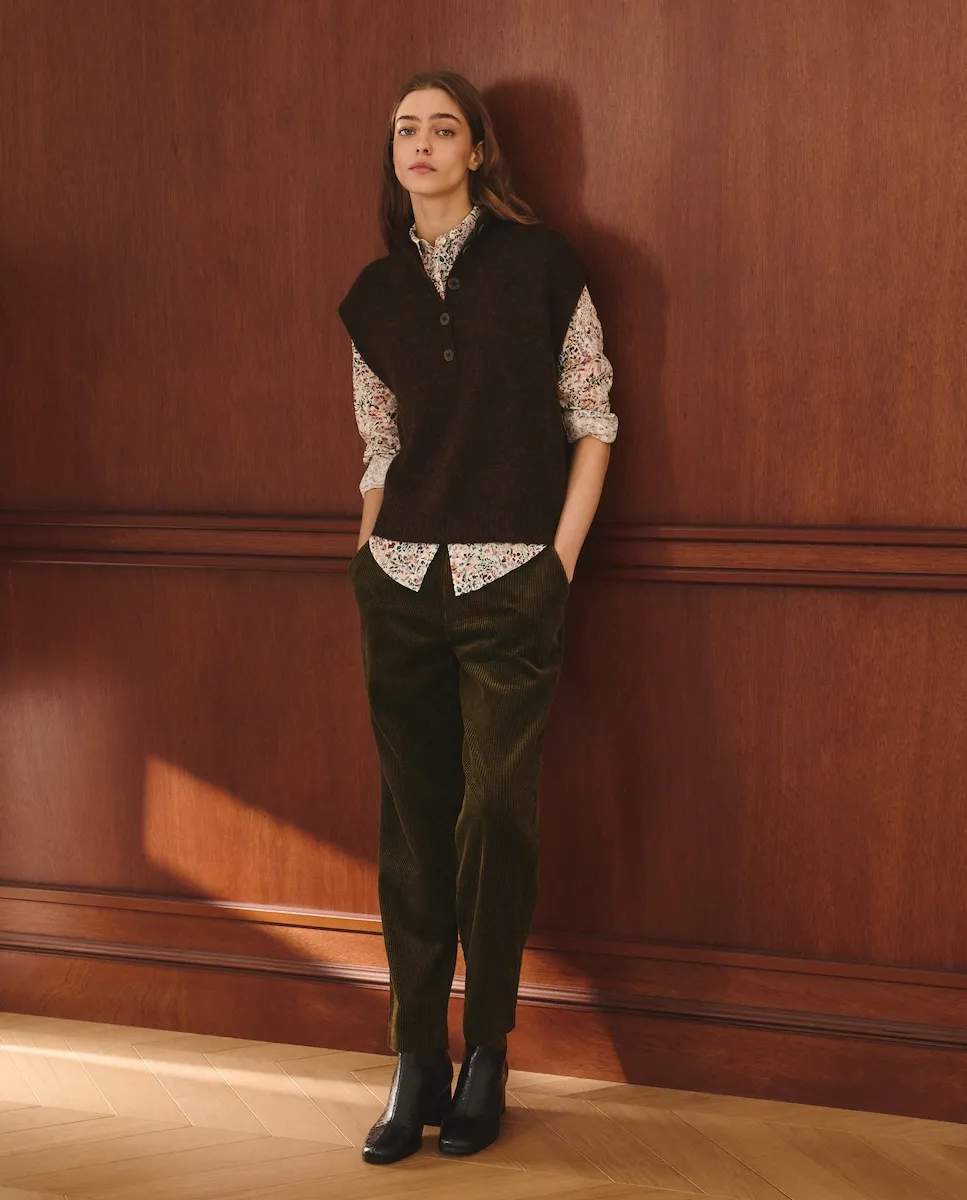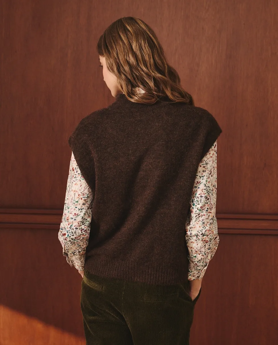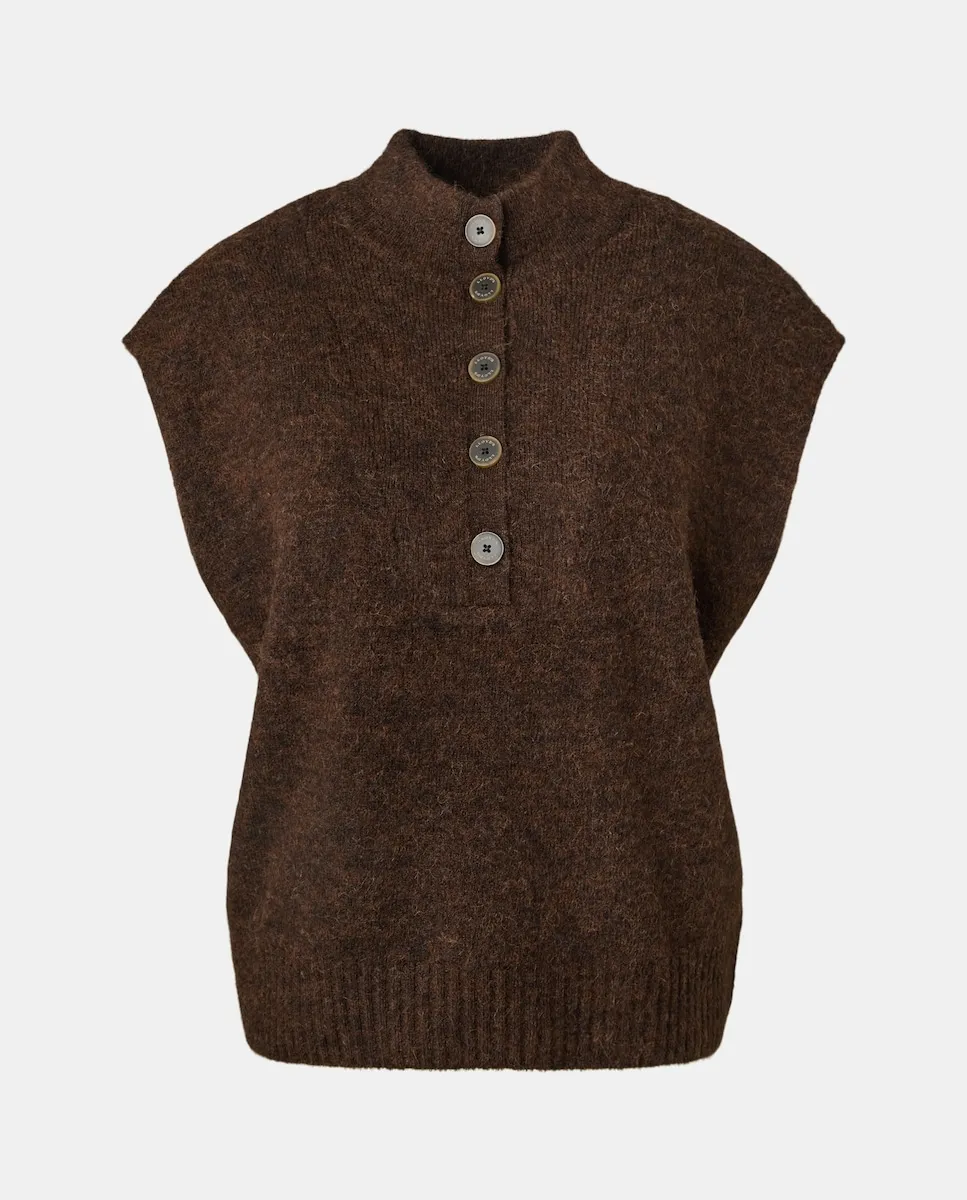 Трикотажный жилет с воротником Перкинса, деталями с пуговицами и смесью альпаки.