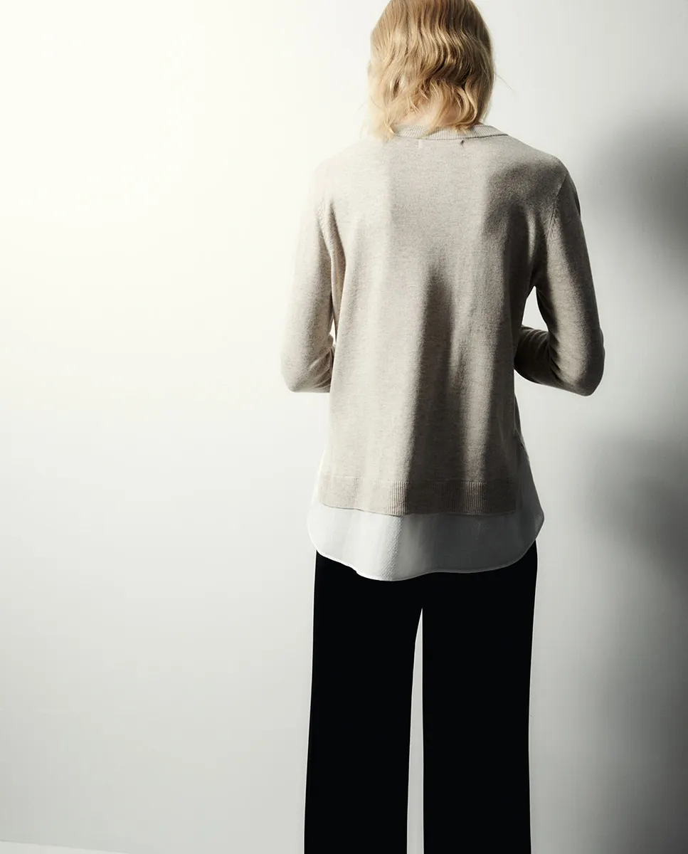 Джемпер с круглым вырезом и длинными рукавами с контрастной отделкой низа