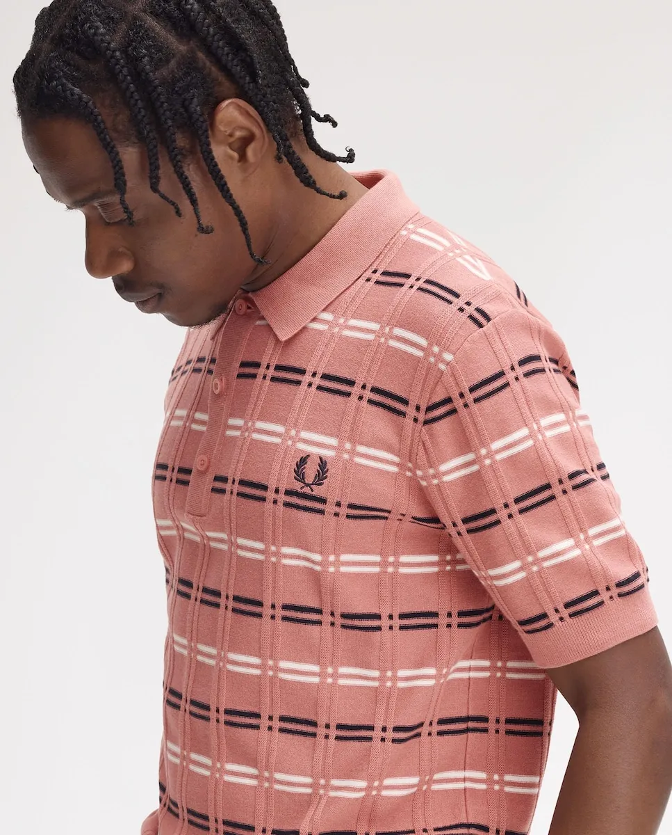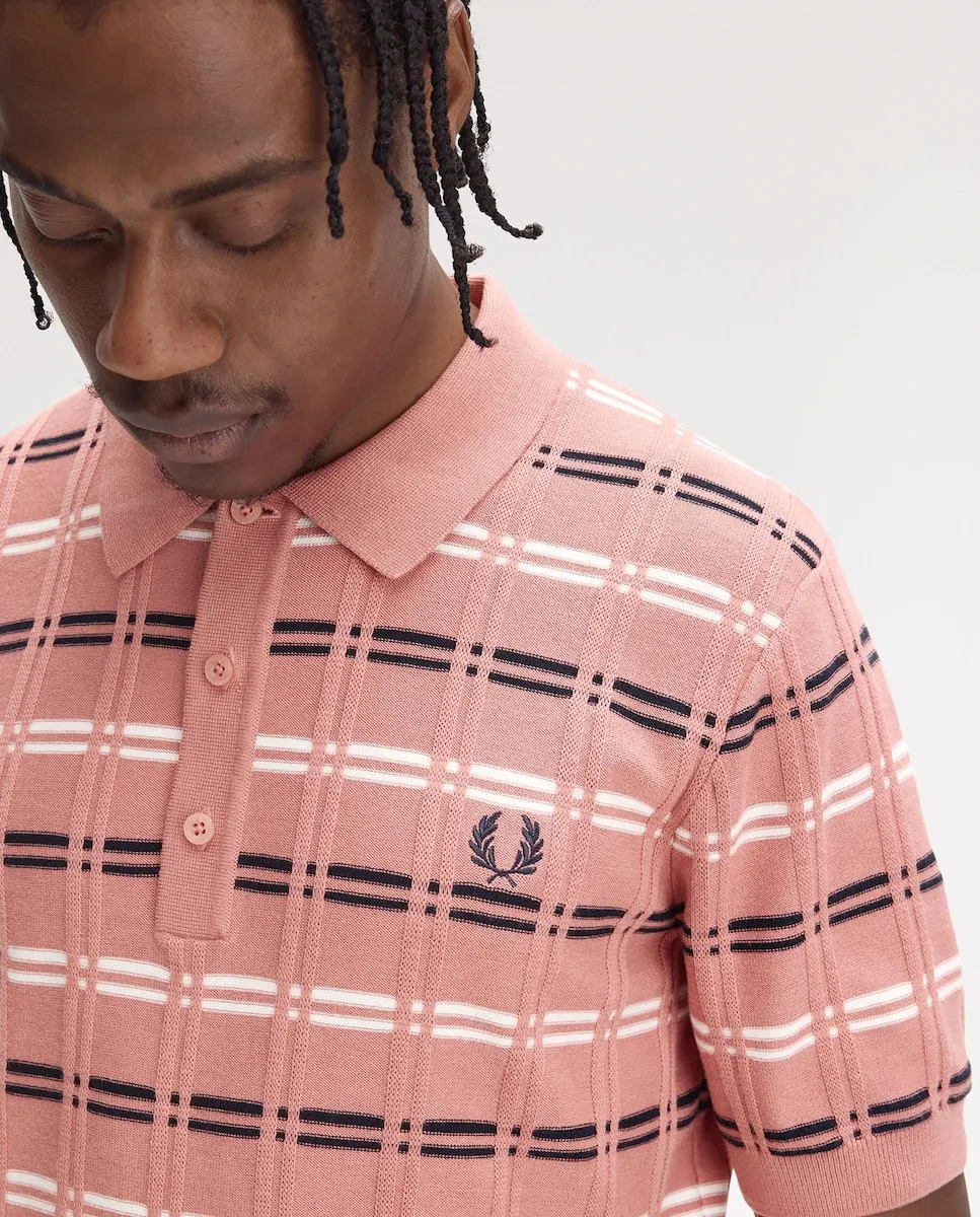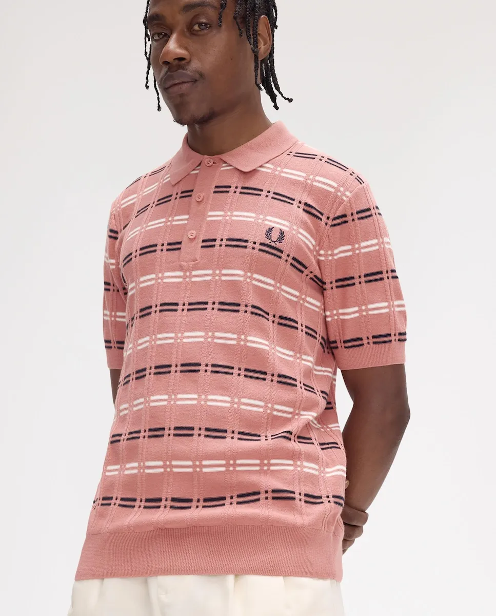 Мужской джемпер с полосатым воротником-поло Fred Perry, розовый
