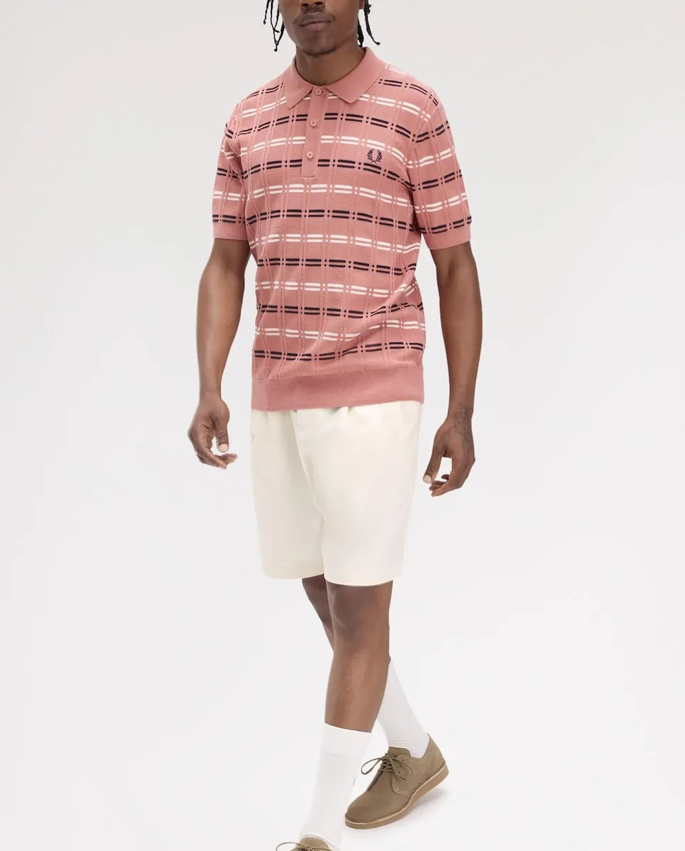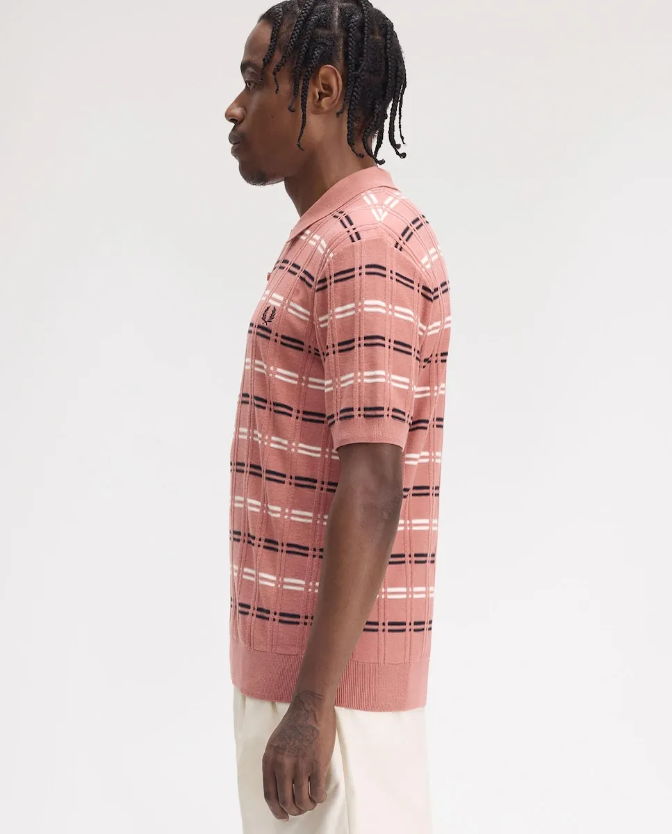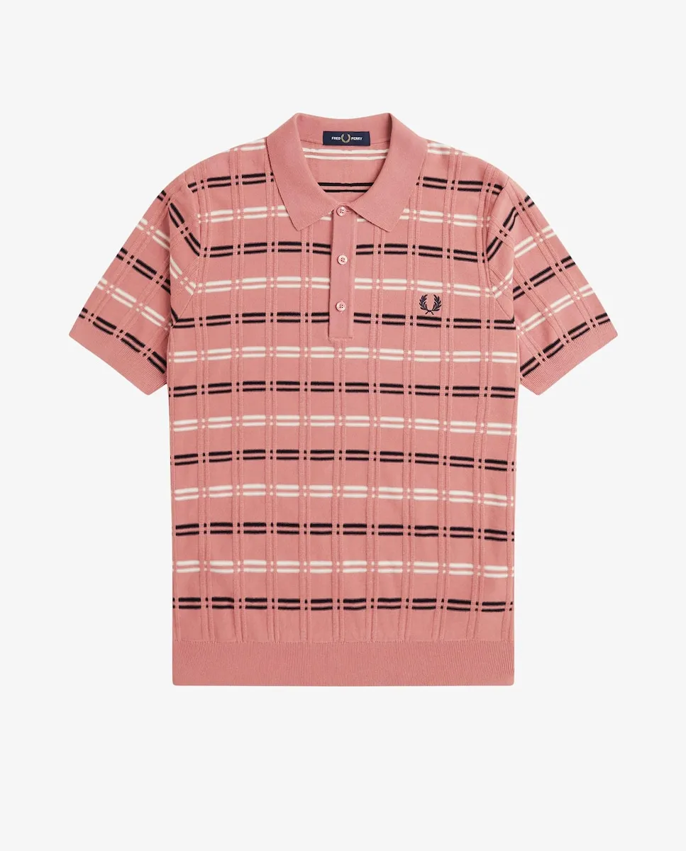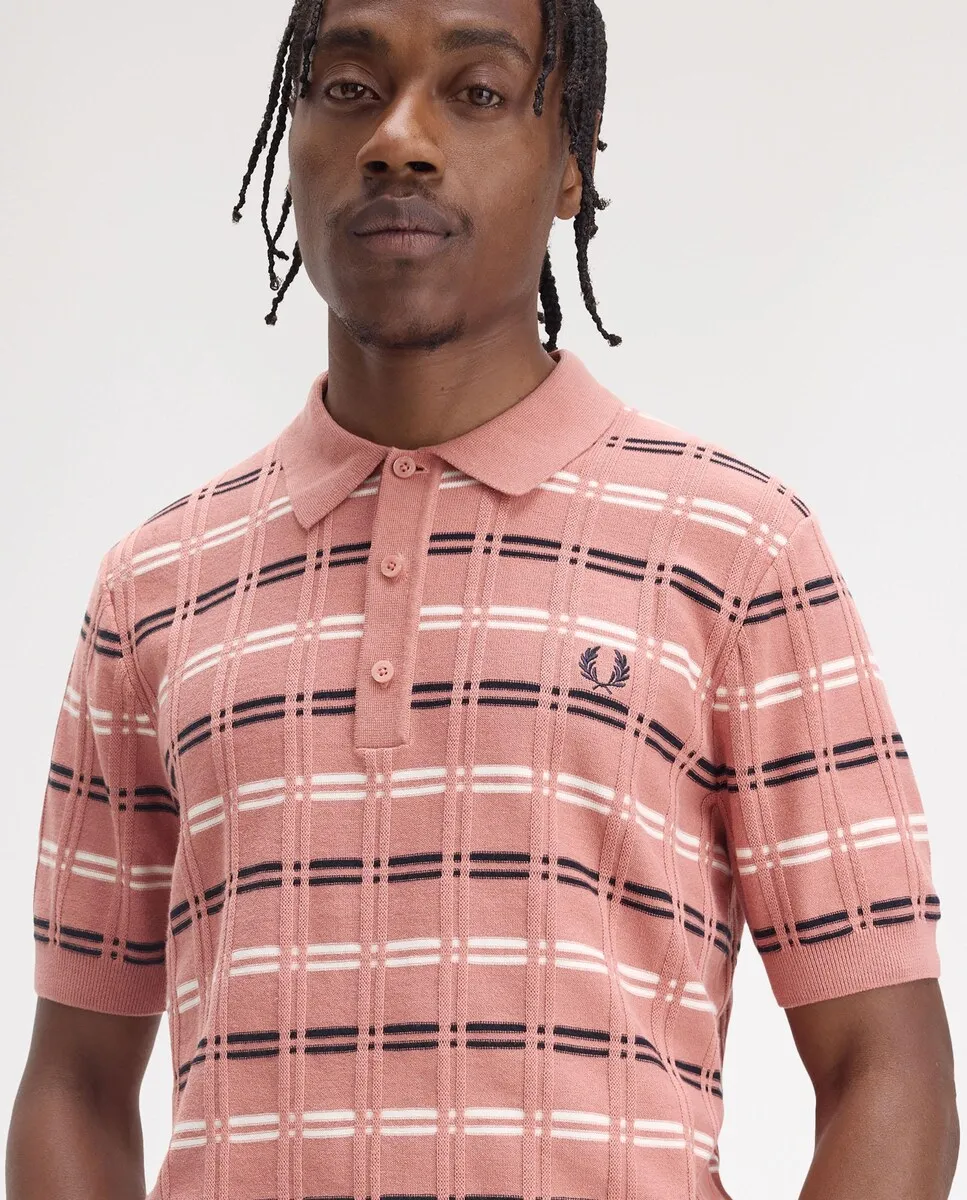 Мужской джемпер с полосатым воротником-поло Fred Perry, розовый