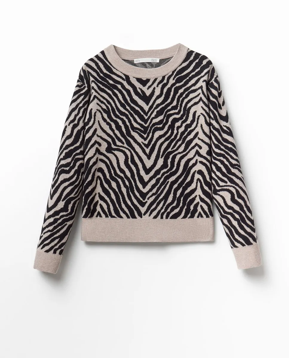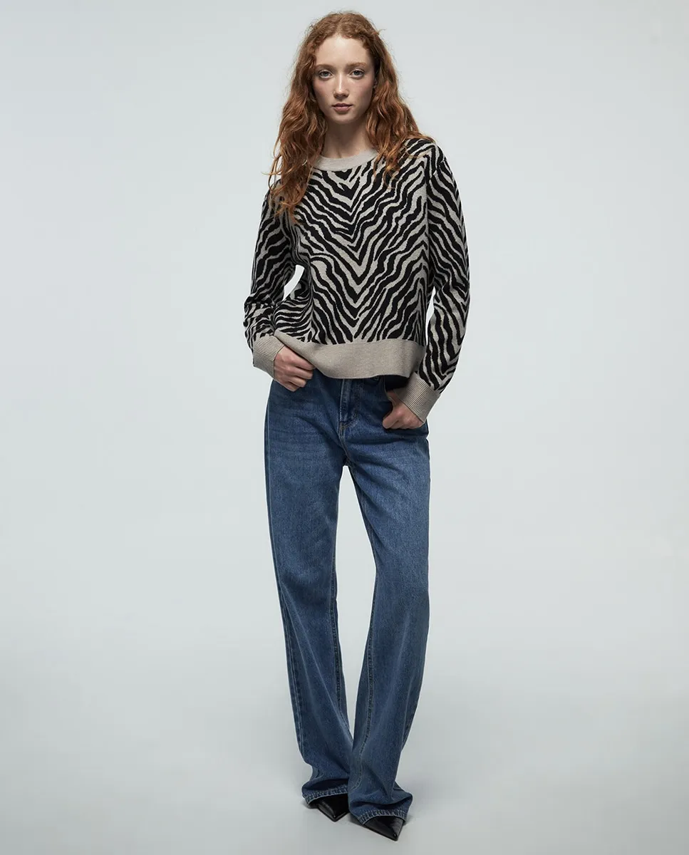 Джемпер жаккардовый с круглым вырезом и длинными рукавами