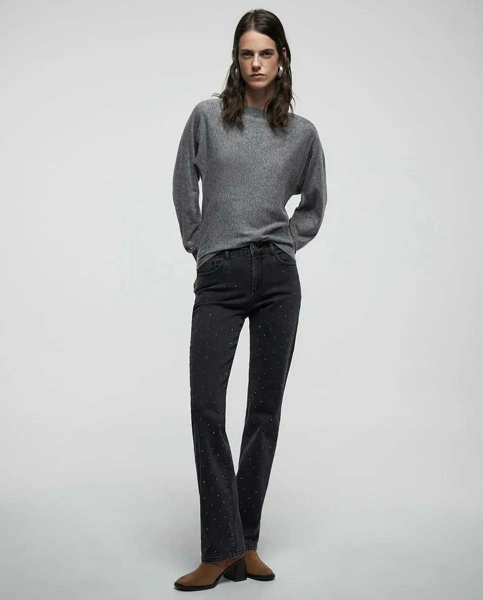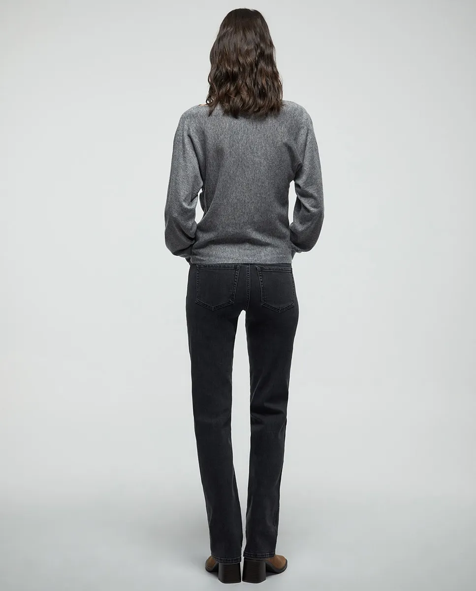 Вязаный джемпер с круглым вырезом и широким рукавом, оканчивающимся манжетой