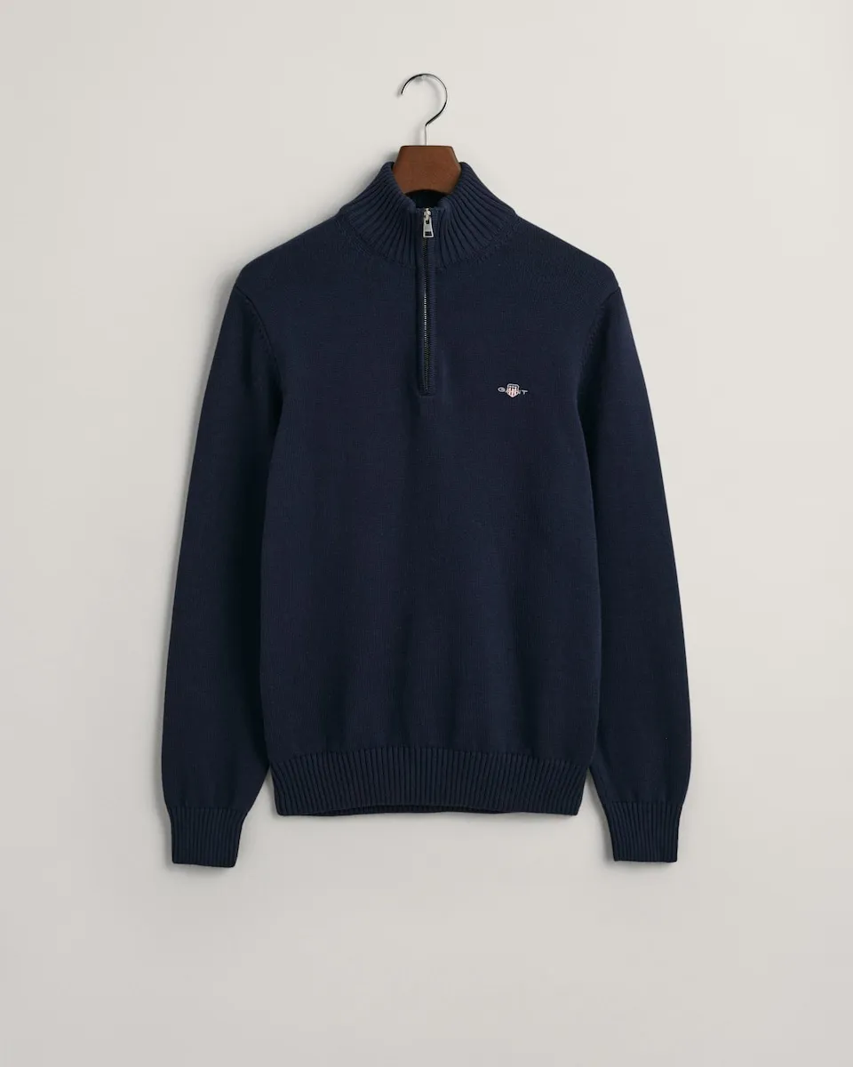 Сделанный из хлопка средней плотности с прямым кроем, этот свитер с полу-молнией украшен графическим изображением герба GANT, вышитым на груди. Этот свитер - идеальная одежда для многослойного ношения в течение всего сезона.