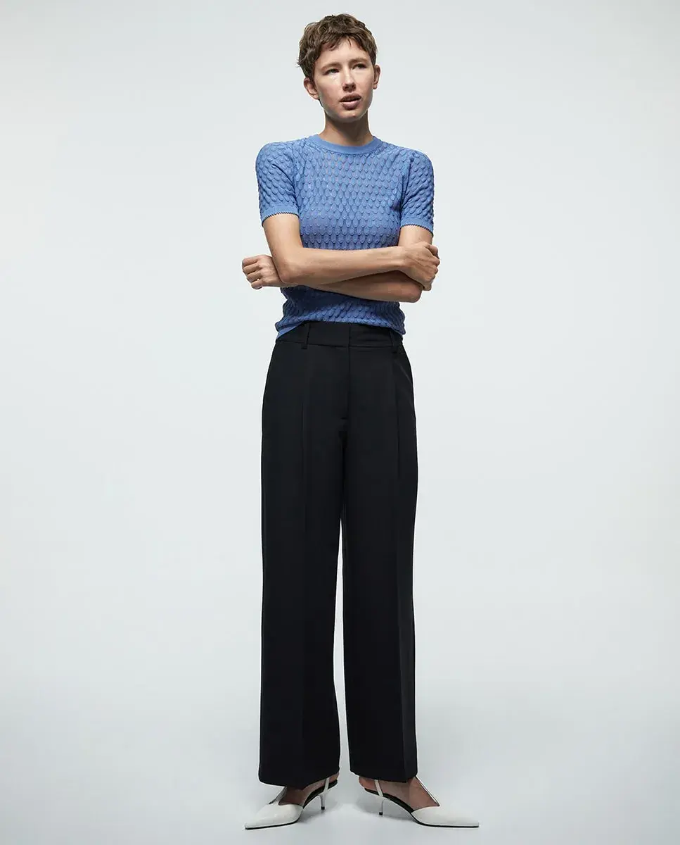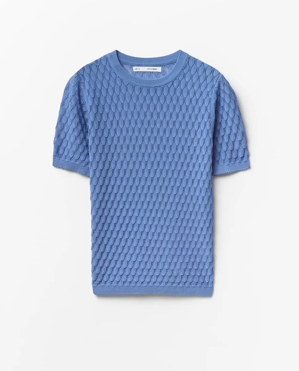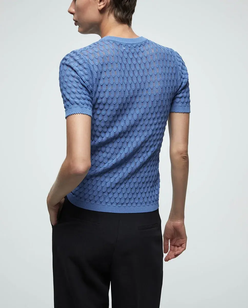 Джемпер с короткими рукавами и круглым вырезом, с ажурной вязкой