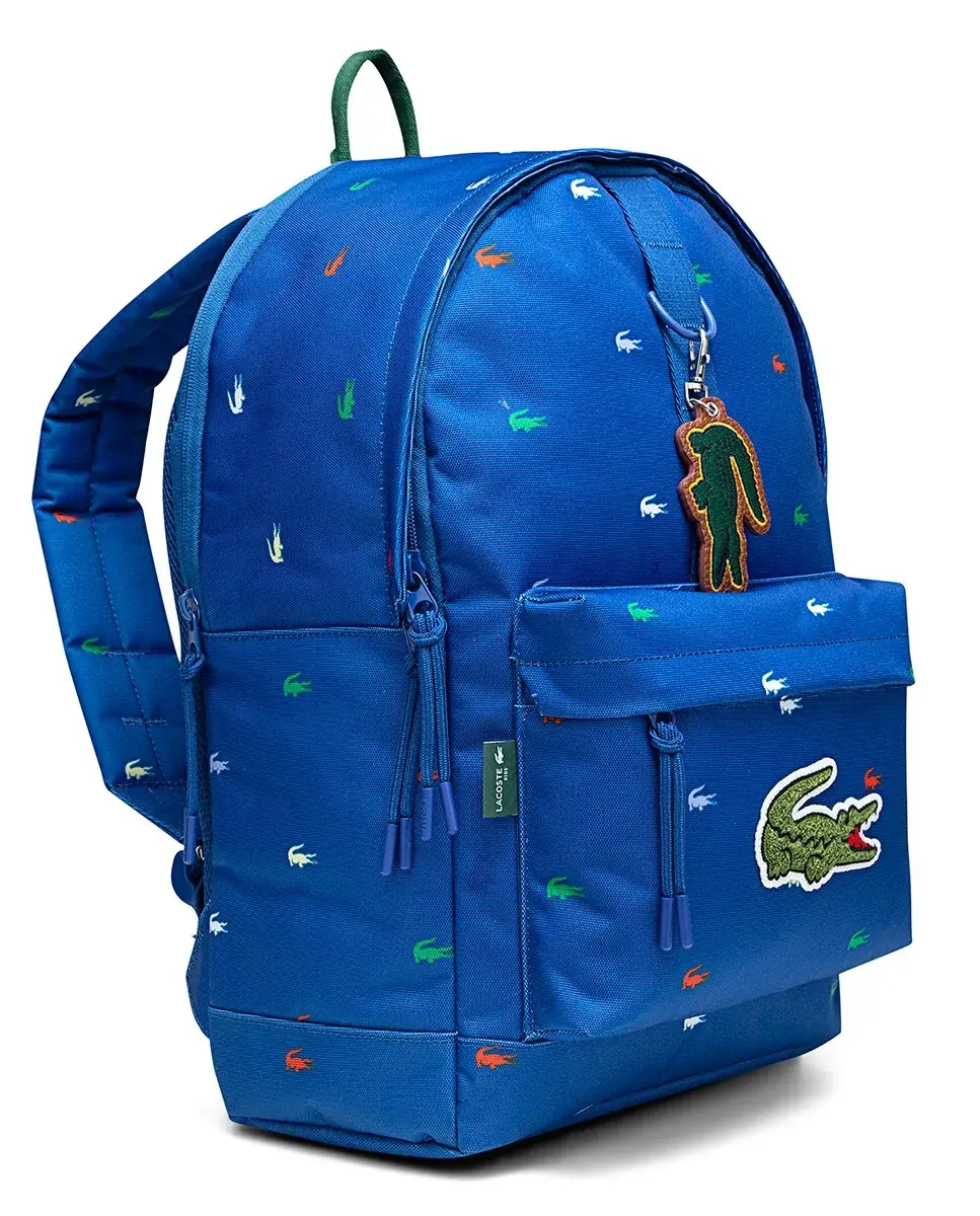С рельефным принтом крокодилов, играющих в теннис или гольф, плавающих или занимающихся другими развлекательными занятиями, этот рюкзак от Lacoste идеально подходит для повседневного использования. Он изготовлен из прочного переработанного полиэстерового материала и украшен нашивкой с вышитым логотипом крокодила на передней части. Основное отделение имеет внутренний карман из сетки на молнии для хранения мелких вещей, к которым вы хотите быстро и легко получить доступ, а заднее отделение имеет мягкую подкладку для размещения вашего ноутбука или планшета. Переносите напитки в боковом кармане для бутылок, чтобы держать руки свободными, и поддерживайте все свои вещи в порядке с помощью переднего кармана на молнии.