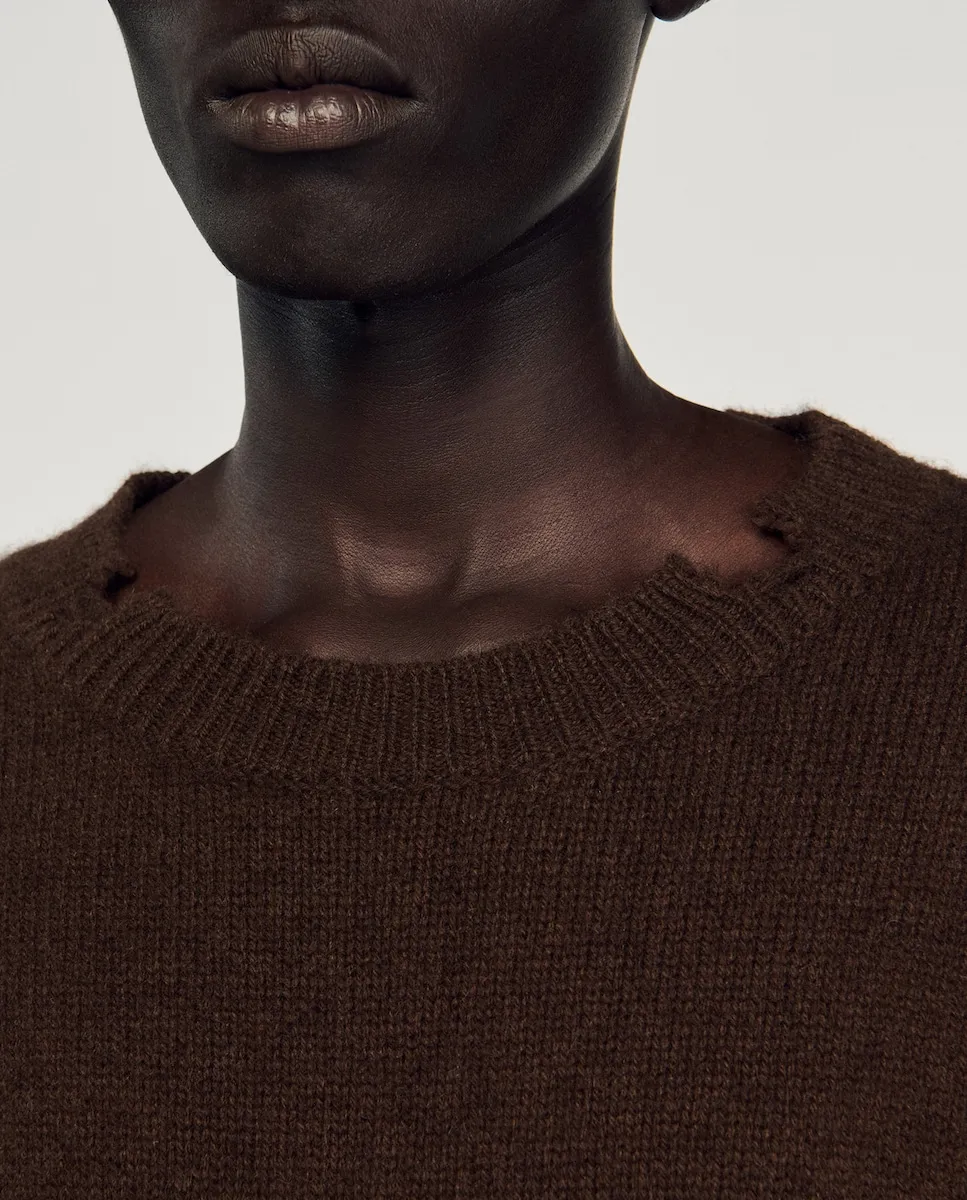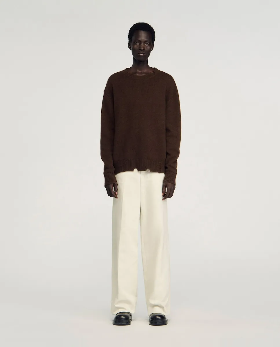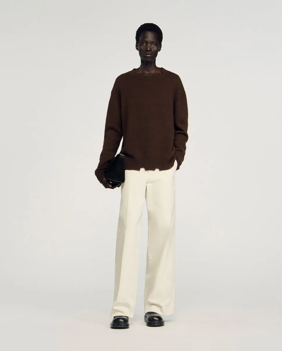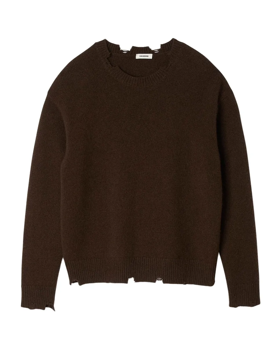 Мужской шерстяной джемпер с эффектом потертости Sandro, темно-коричневый