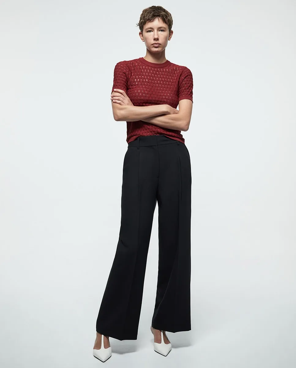 Джемпер с короткими рукавами и круглым вырезом, с ажурной вязкой