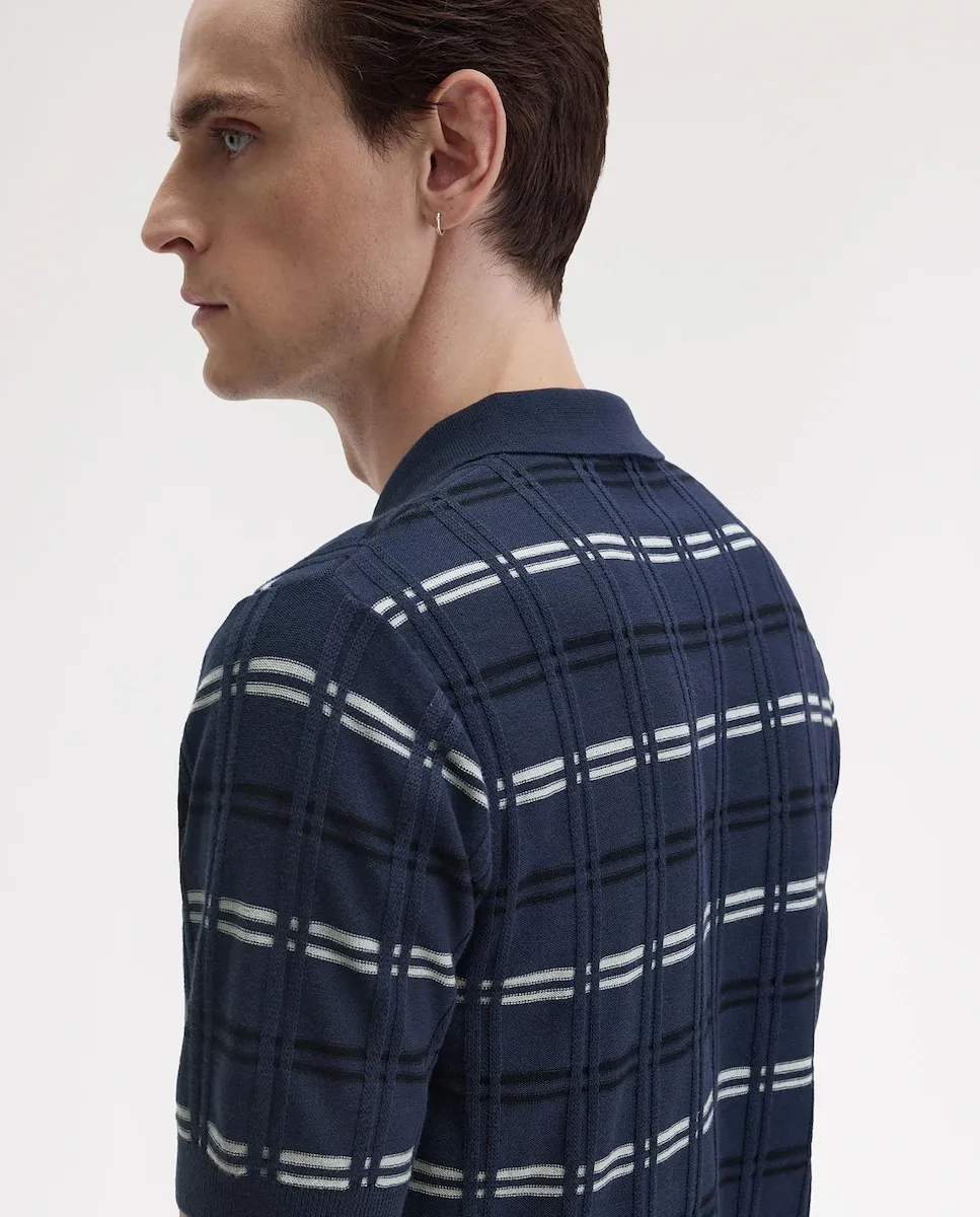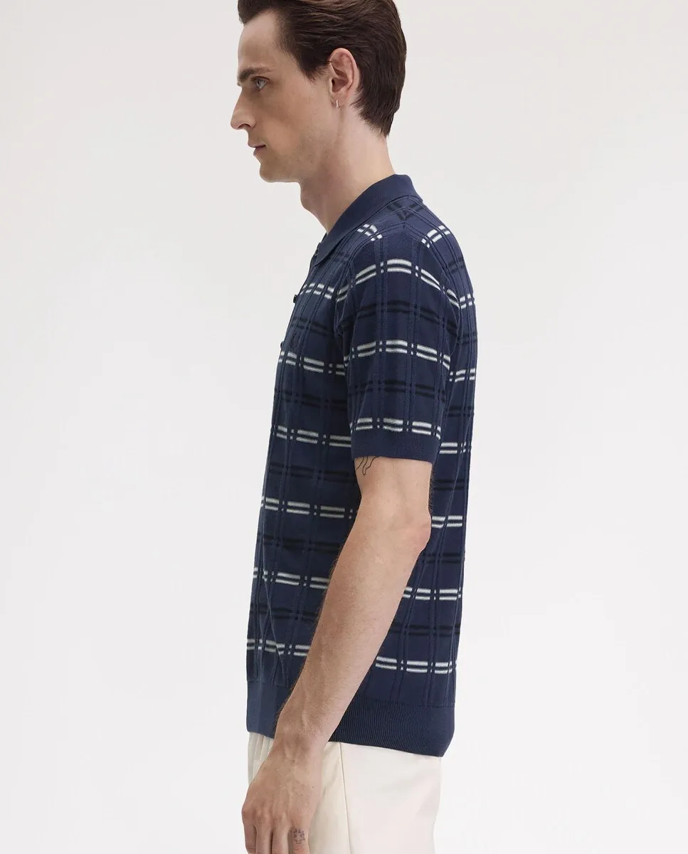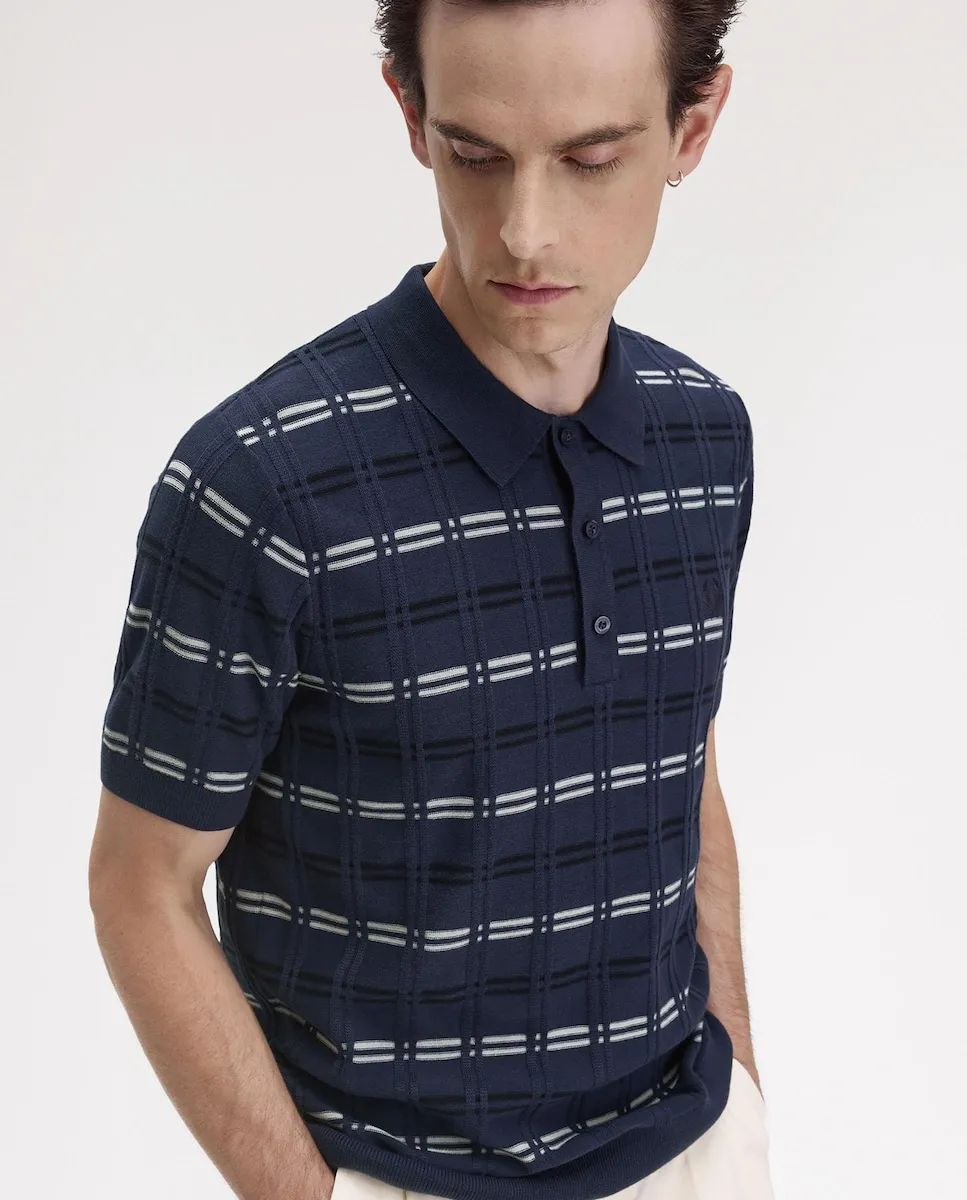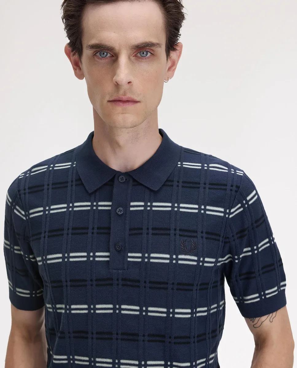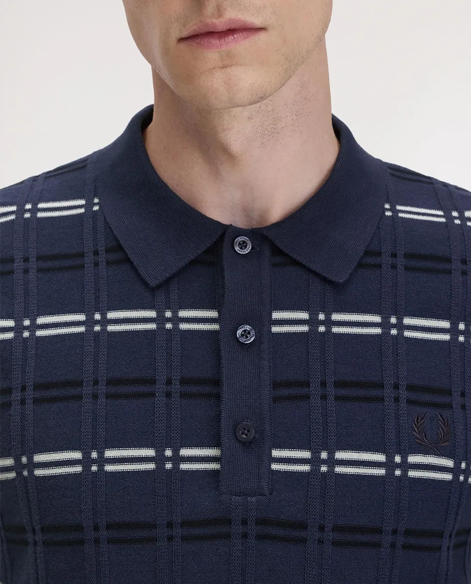 Мужской джемпер с полосатым воротником-поло Fred Perry, темно-синий