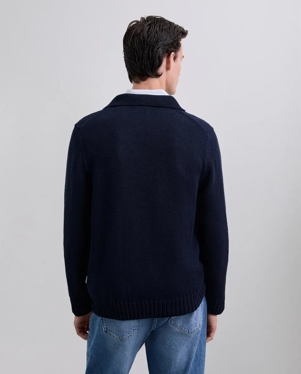 Мужской хлопковый джемпер с воротником-поло Scalpers, темно-синий