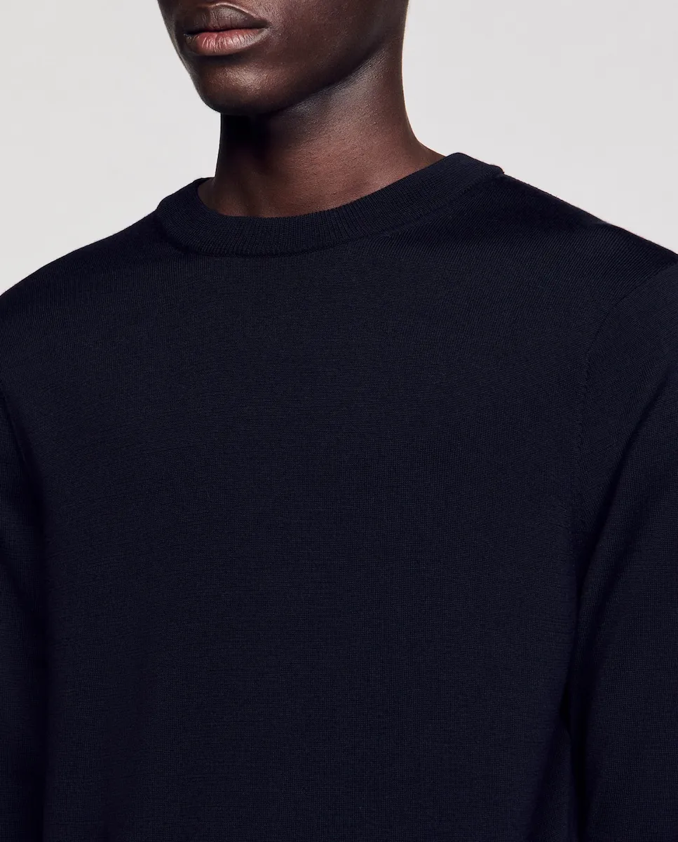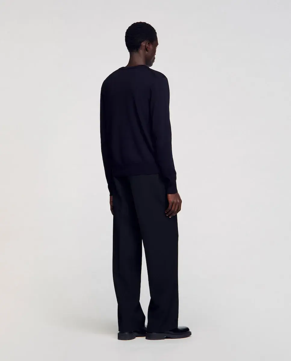 Джемпер с круглым вырезом из мериносовой шерсти с тонкой вязкой и гладким дизайном. Джемпер Sandro для мужчин из мериносовой шерсти. Круглый вырез. Длинные рукава. 100% шерсть.