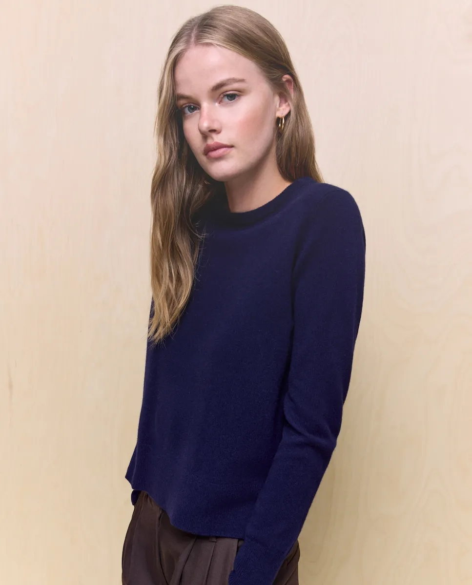 Однотонный джемпер с длинными рукавами и круглым вырезом из кашемира.