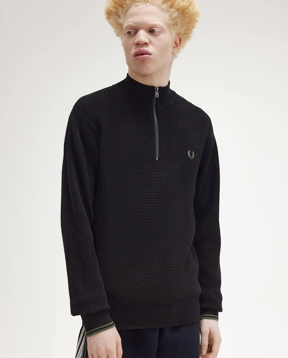 Мужской джемпер в рубчик с молнией Fred Perry, черный