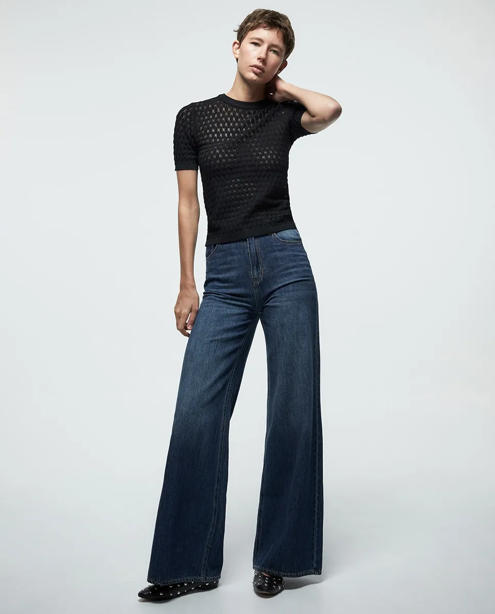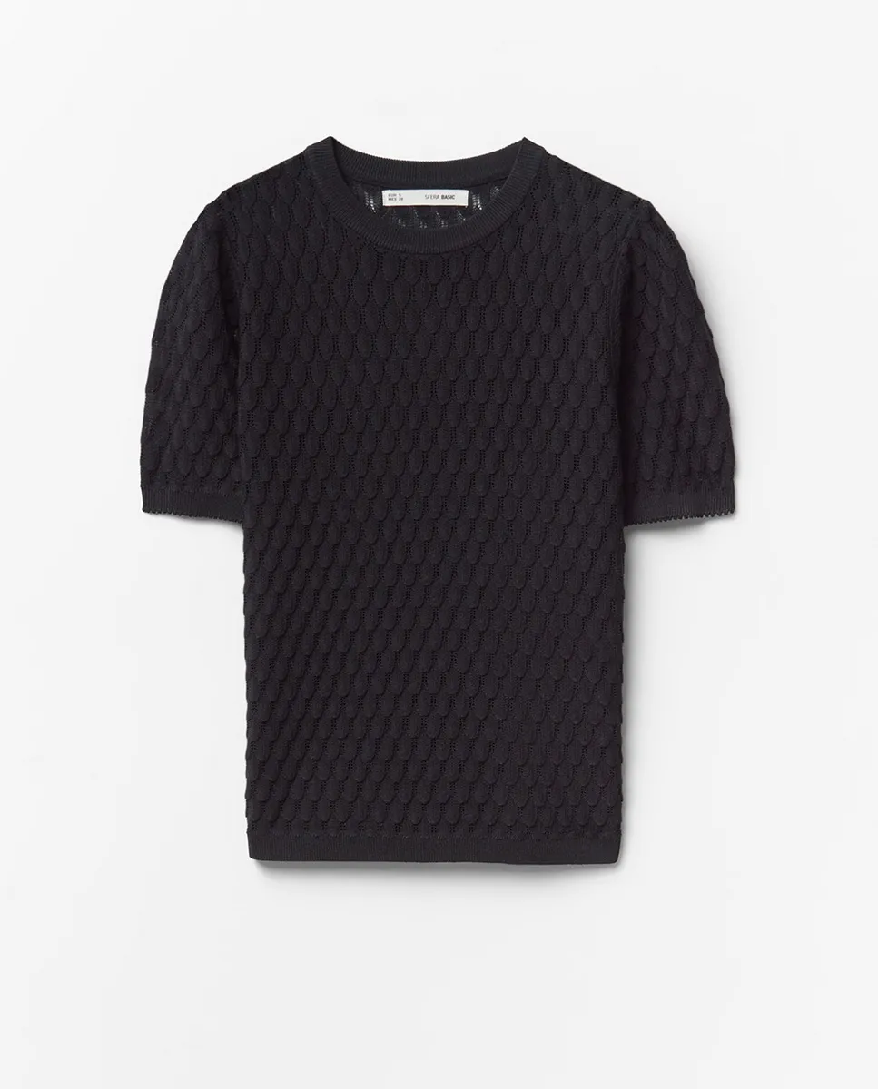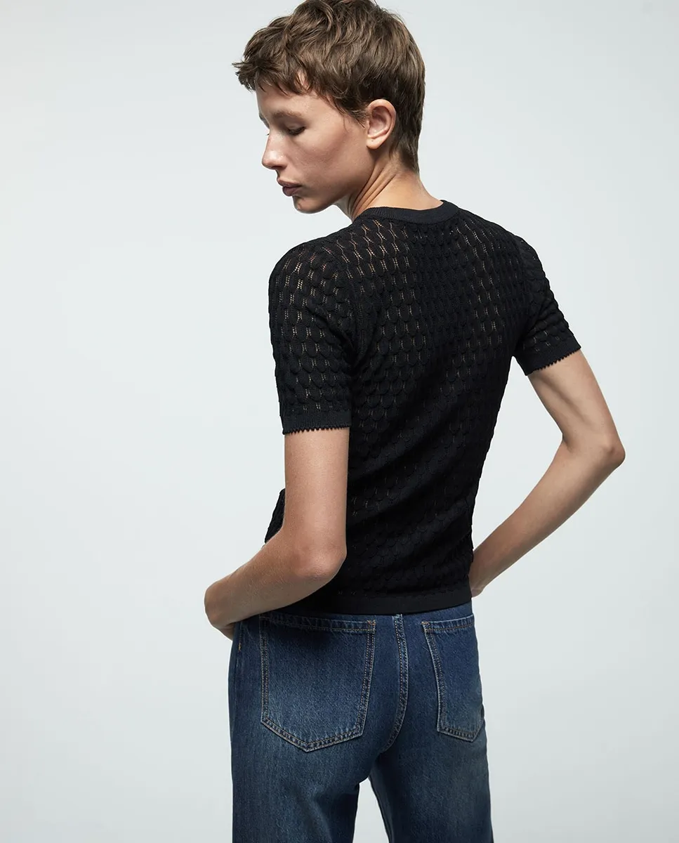 Джемпер с короткими рукавами и круглым вырезом, с ажурной вязкой