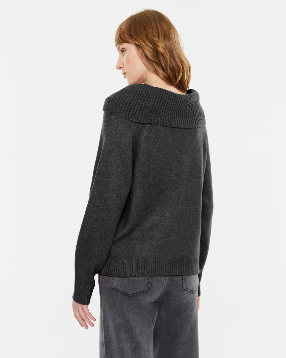 Базовый свитер с длинным рукавом и вырезом лодочкой. Выполнен из трикотажа в рубчик на воротнике, манжетах и подоле. Это базовый женский свитер, который придает вашему образу молодую и современную атмосферу. Стандартная посадка.