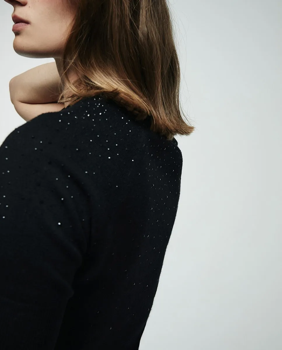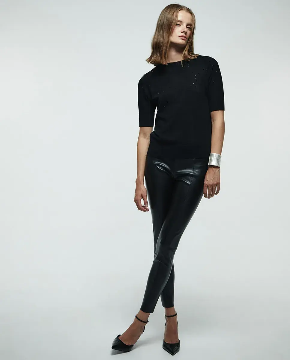 Футболка с коротким рукавом и круглым вырезом, украшенная стразами