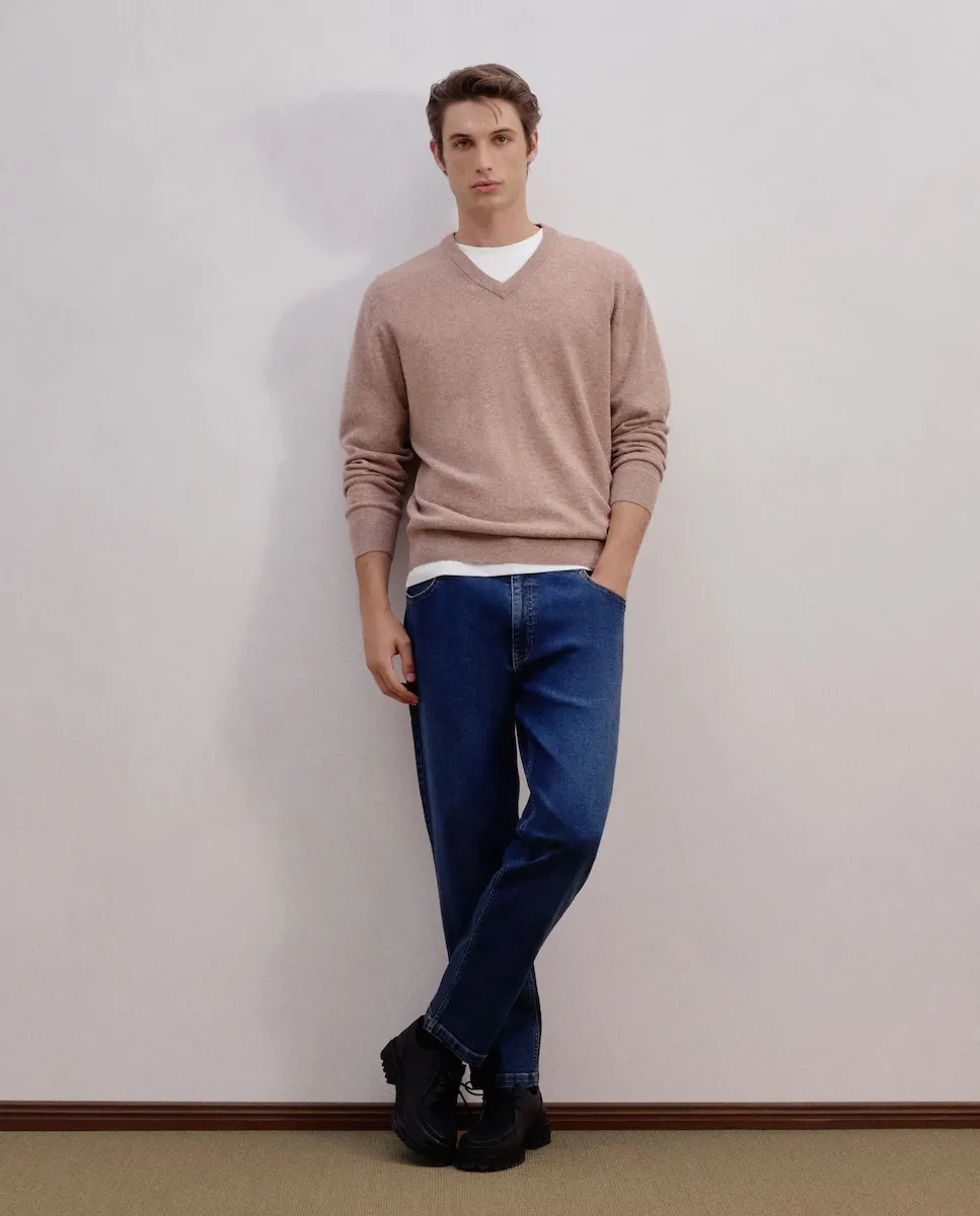 Мужской свитер с V-образным вырезом из овечьей шерсти.