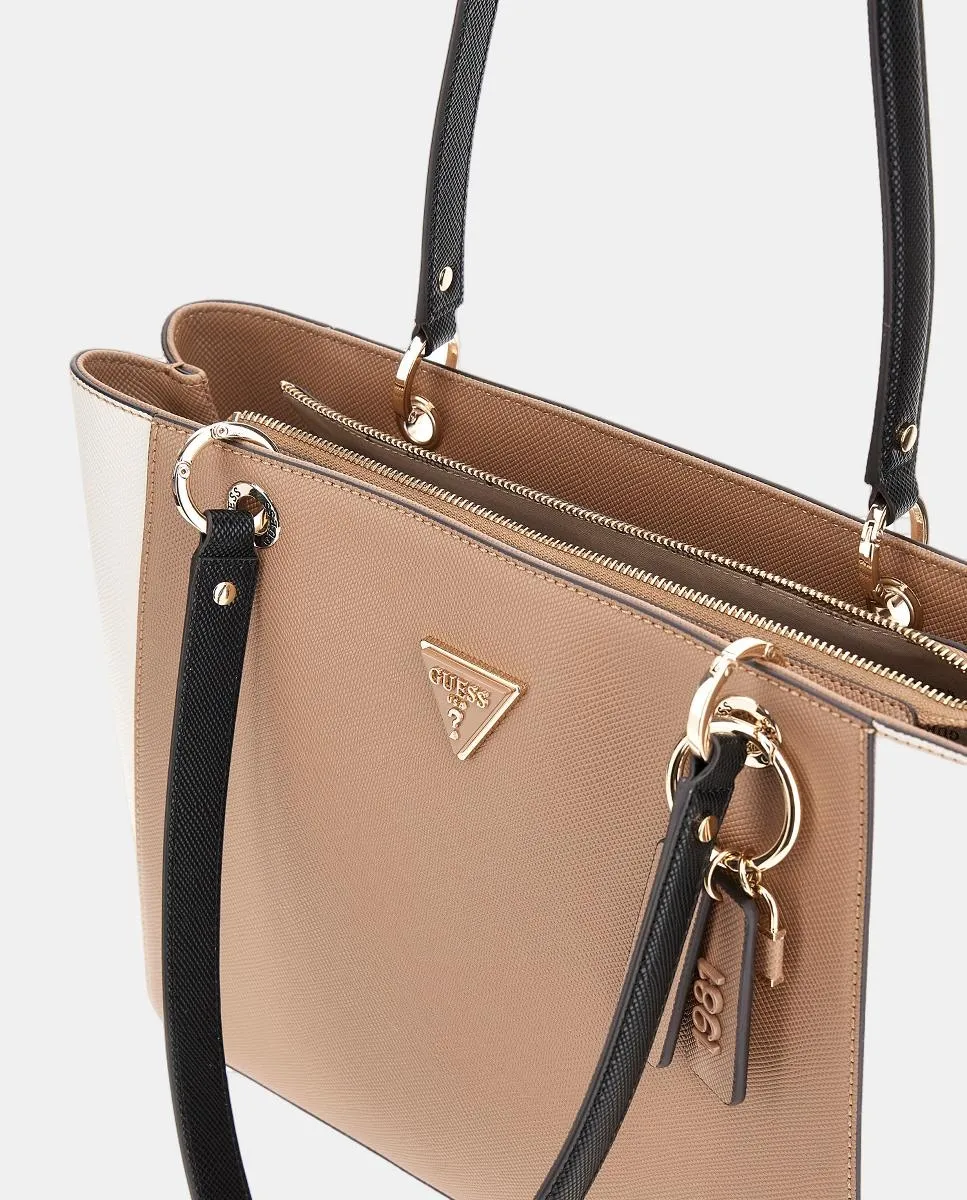 Сумка через плечо типа тоут, модель Noelle II, отделка сафьяно с двойным тоном, застежка-молния, двойная ручка и металлический треугольный логотип в золотом цвете