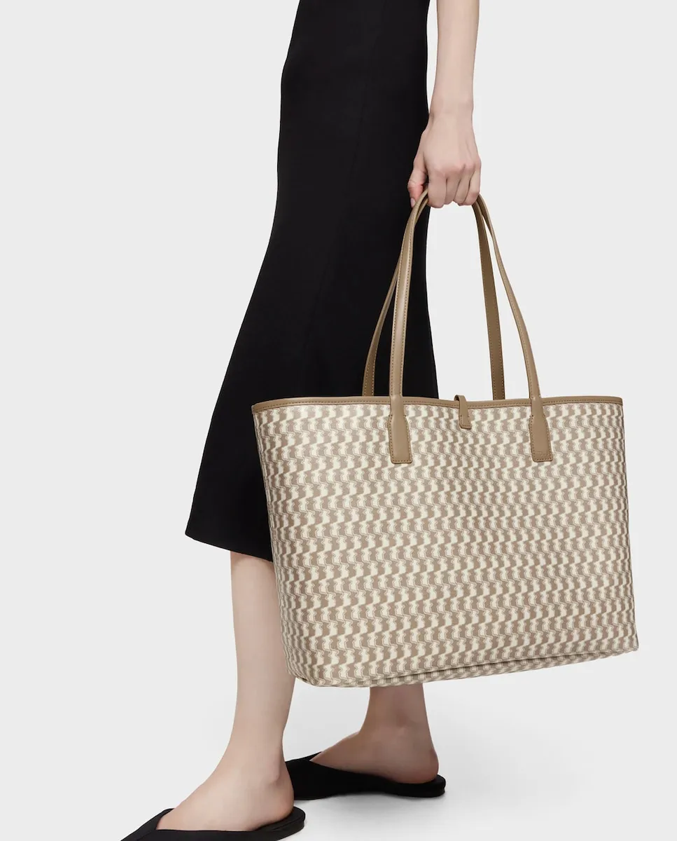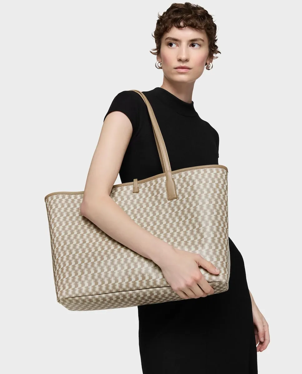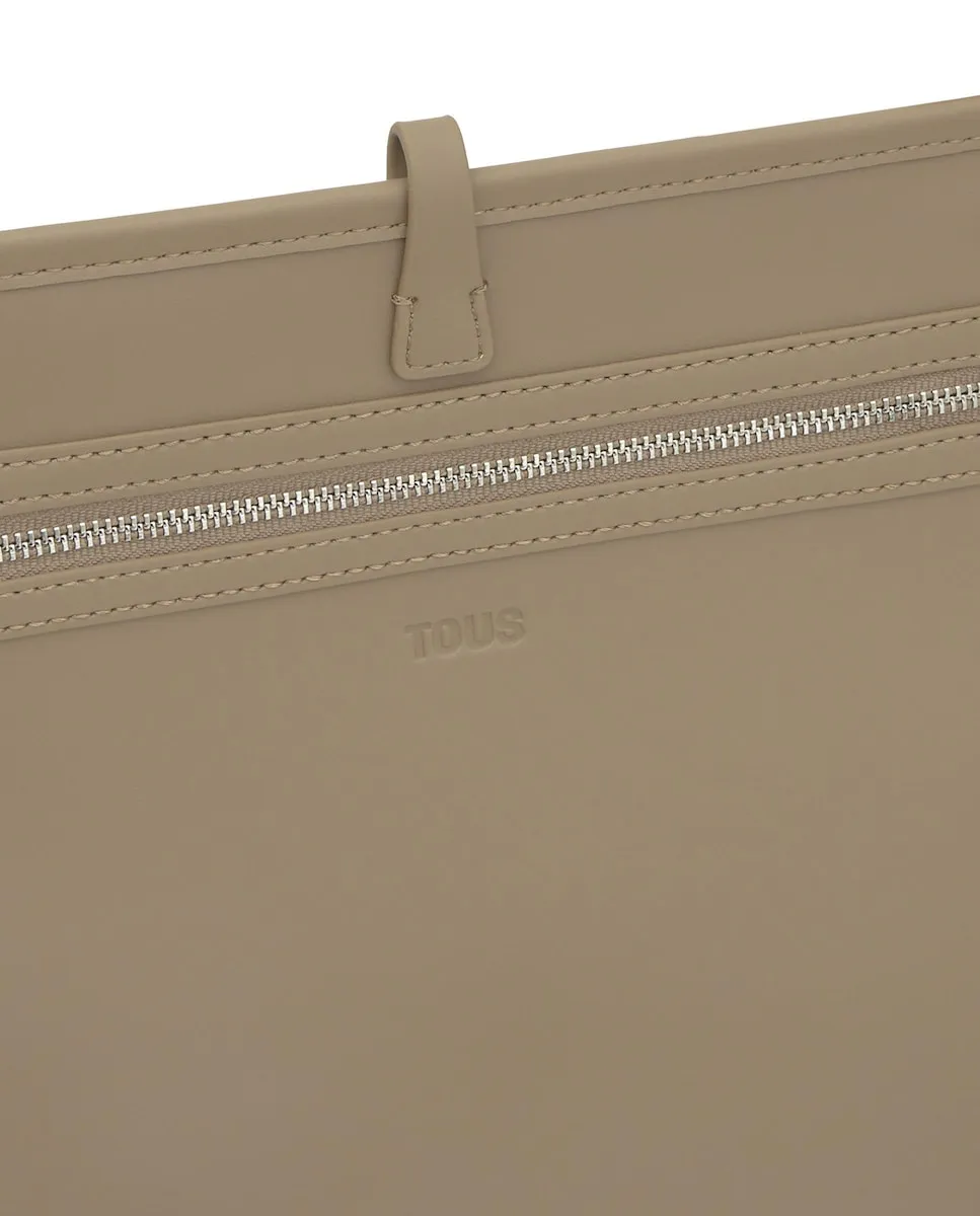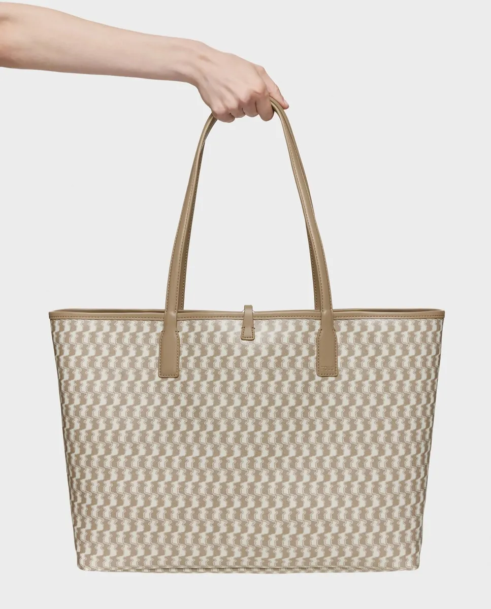 Большая сумка-тоут TOUS Double Way Bear из хлопка и переработанного полиэстера с деталями из полиуретана цвета тауп. Застежка-пряжка. Фиксированные ручки для плеча. Внутренний карман на молнии. Внутри имеется отделение с съемной молнией. Размеры (высота x ширина x глубина): 29 x 51,5 x 14 см.