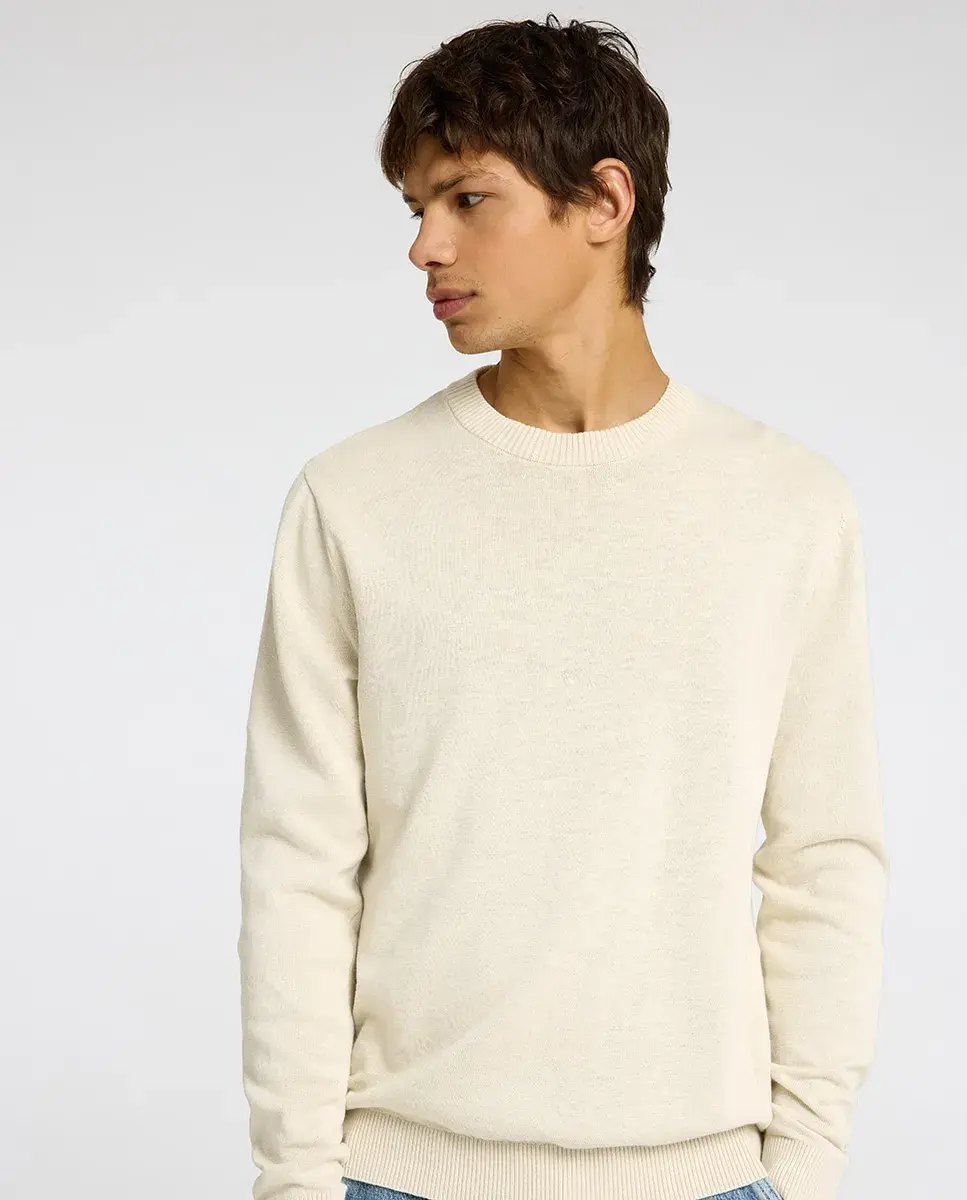 Мужской джемпер с круглым вырезом, выполненный из мериносовой шерсти.
