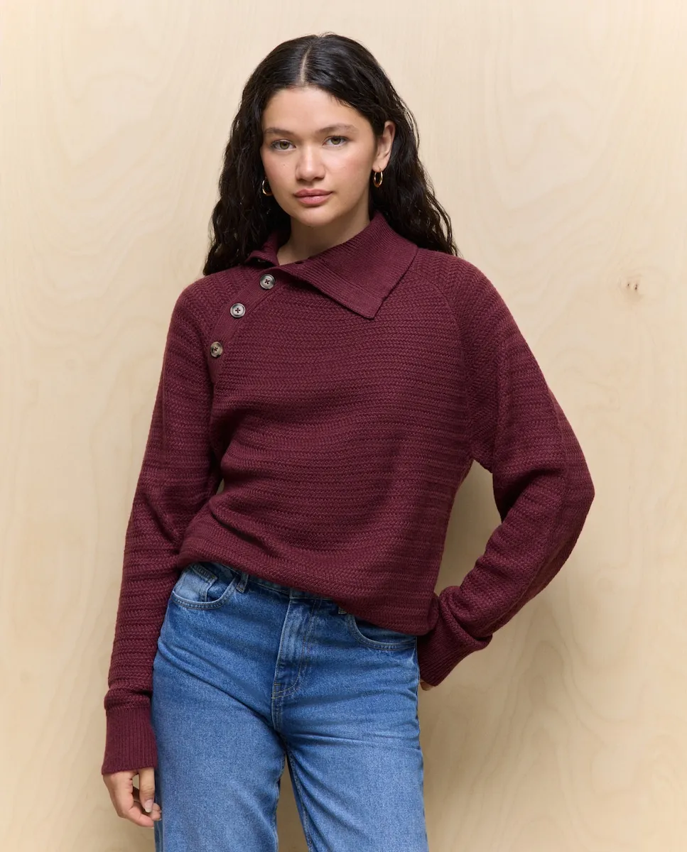 Женский свитер с рисунком и пуговицами Easy Wear, бордовый