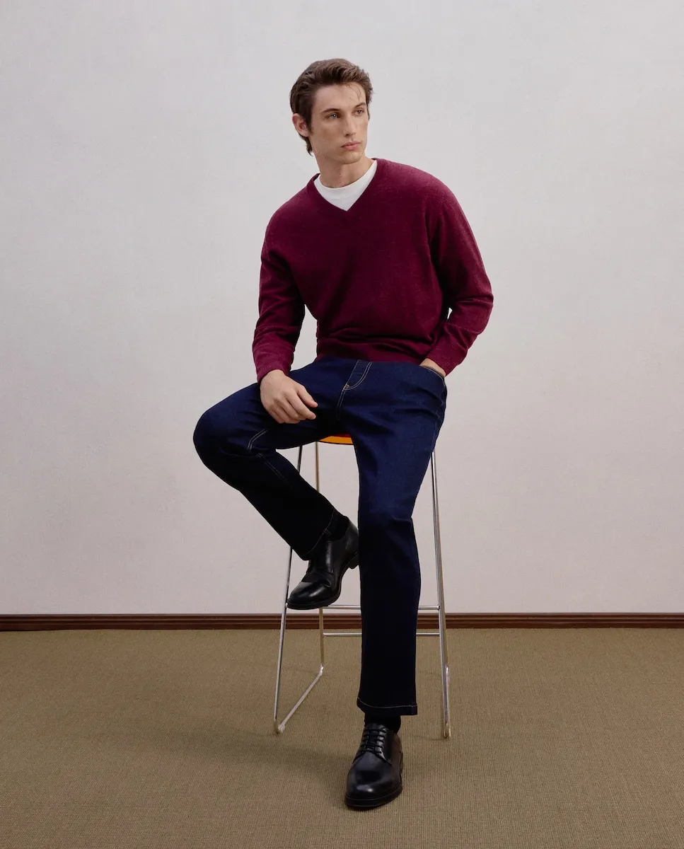 Мужской свитер с V-образным вырезом из овечьей шерсти.