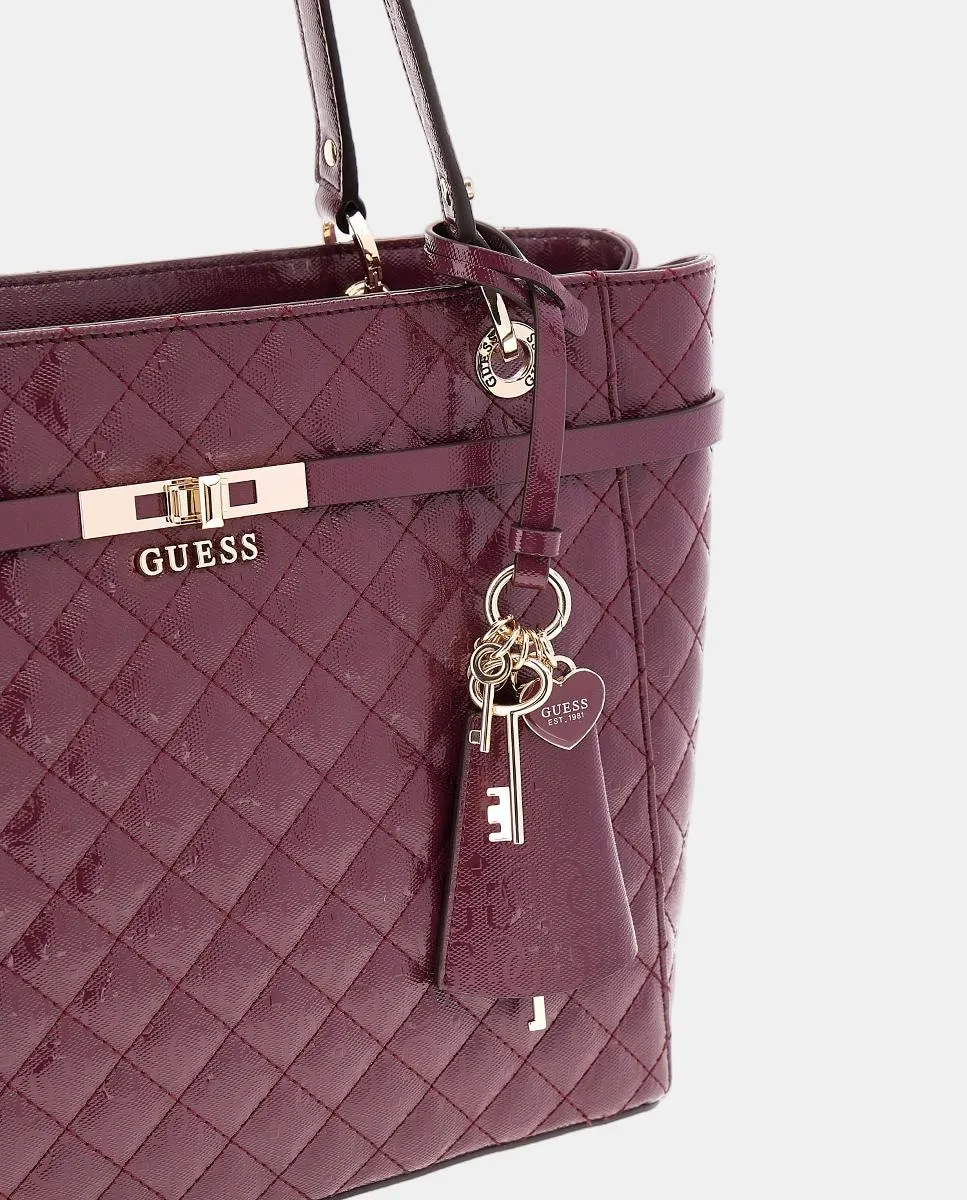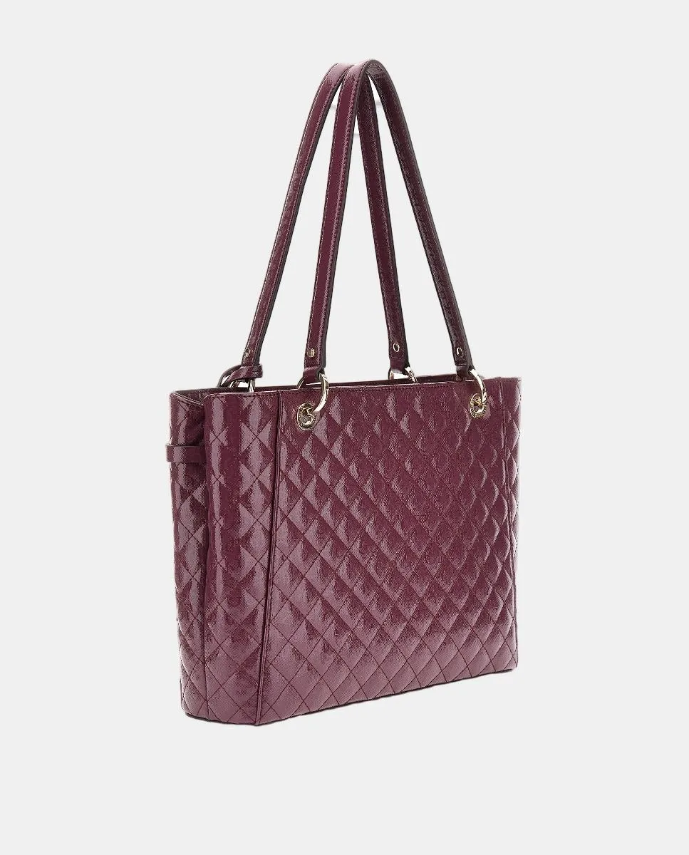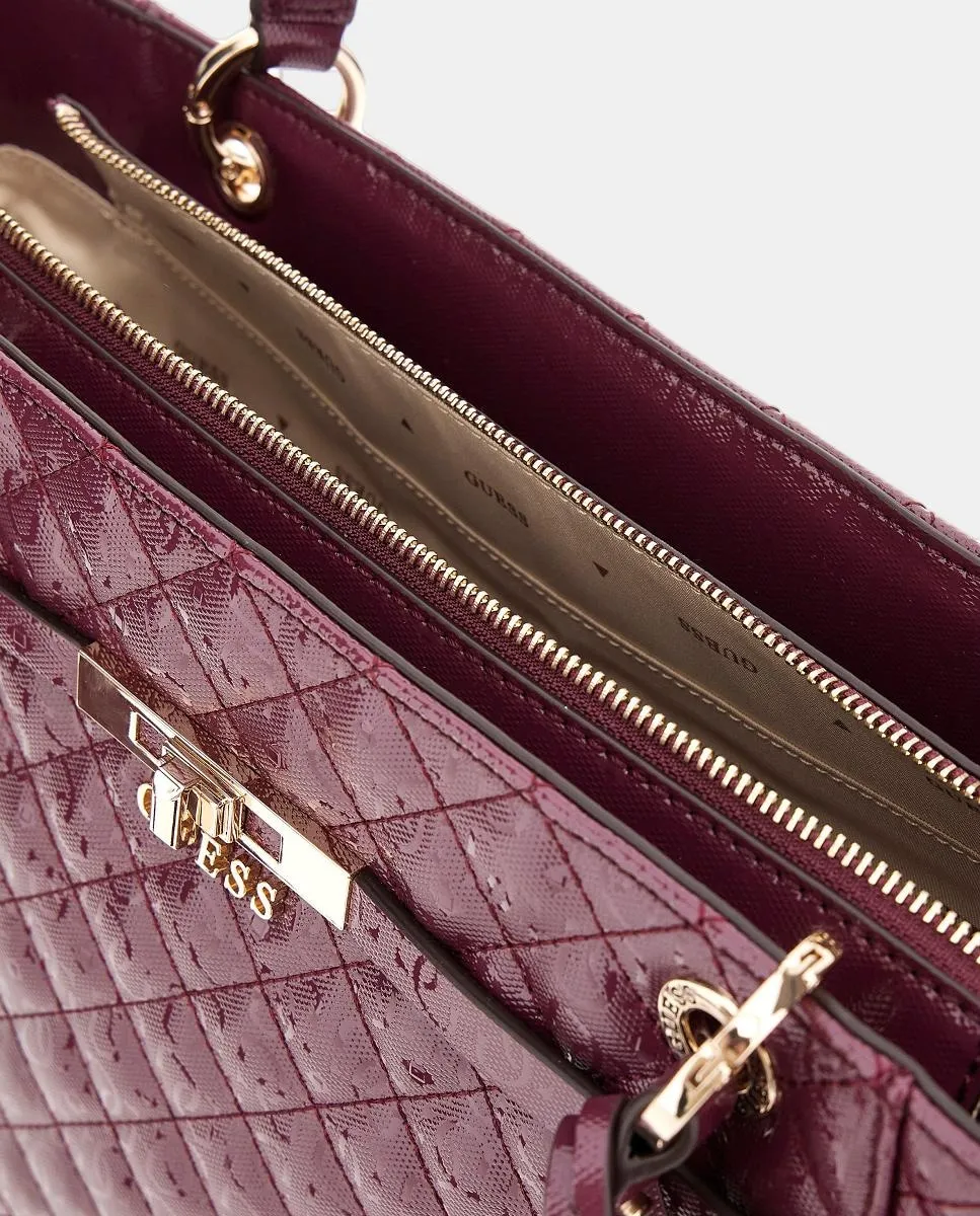 Сумка через плечо модели Idra типа tote, с застежкой-молнией, с отделкой из стеганой лаковой кожи с принтом 4G и центральным металлическим логотипом Guess золотого цвета