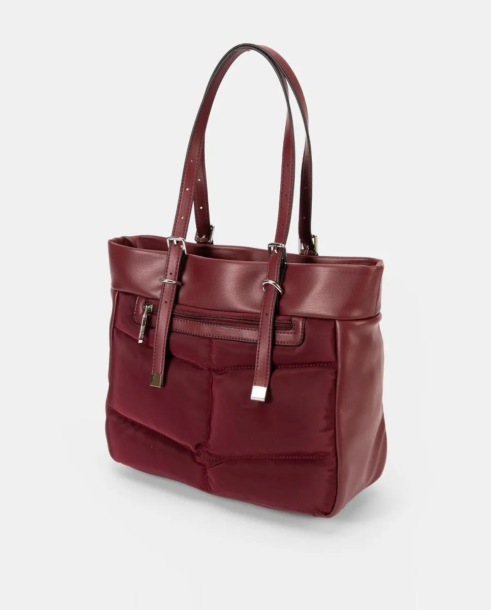 Сумка-шоппер с двойными ручками, верхней застежкой и стеганым корпусом с декоративной строчкой