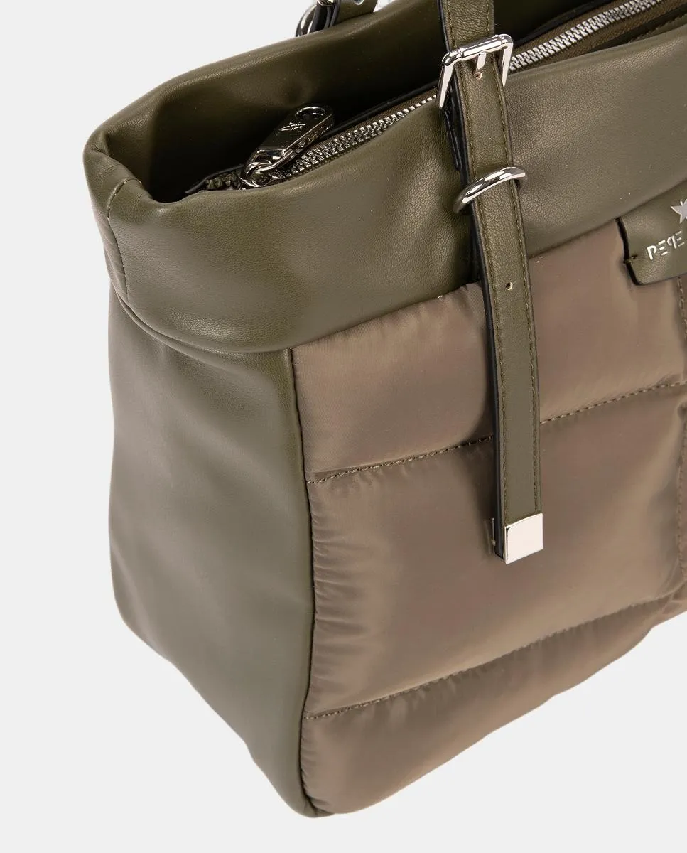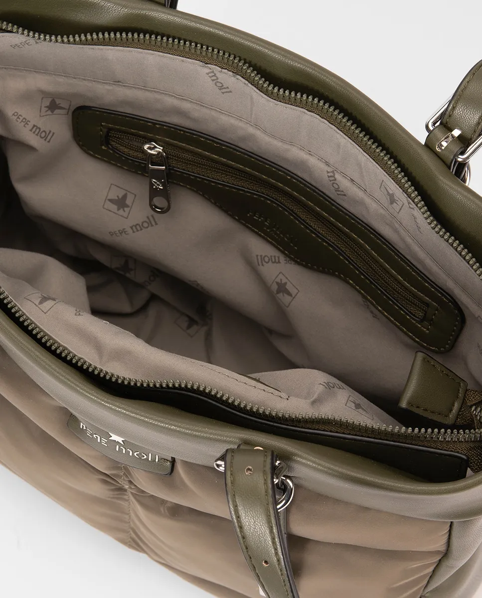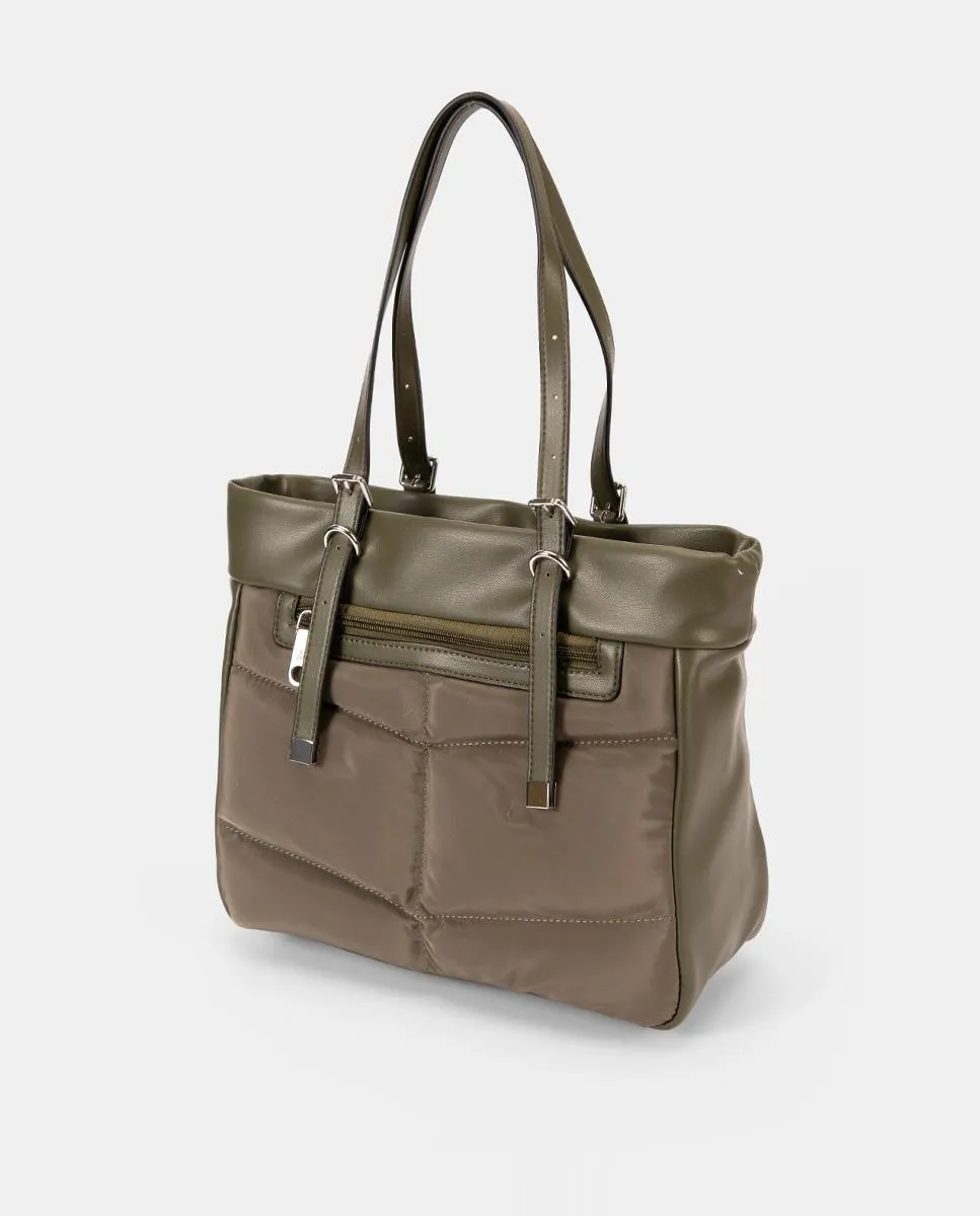 Сумка-шоппер с двойными ручками, верхней застежкой и стеганым корпусом с декоративной строчкой