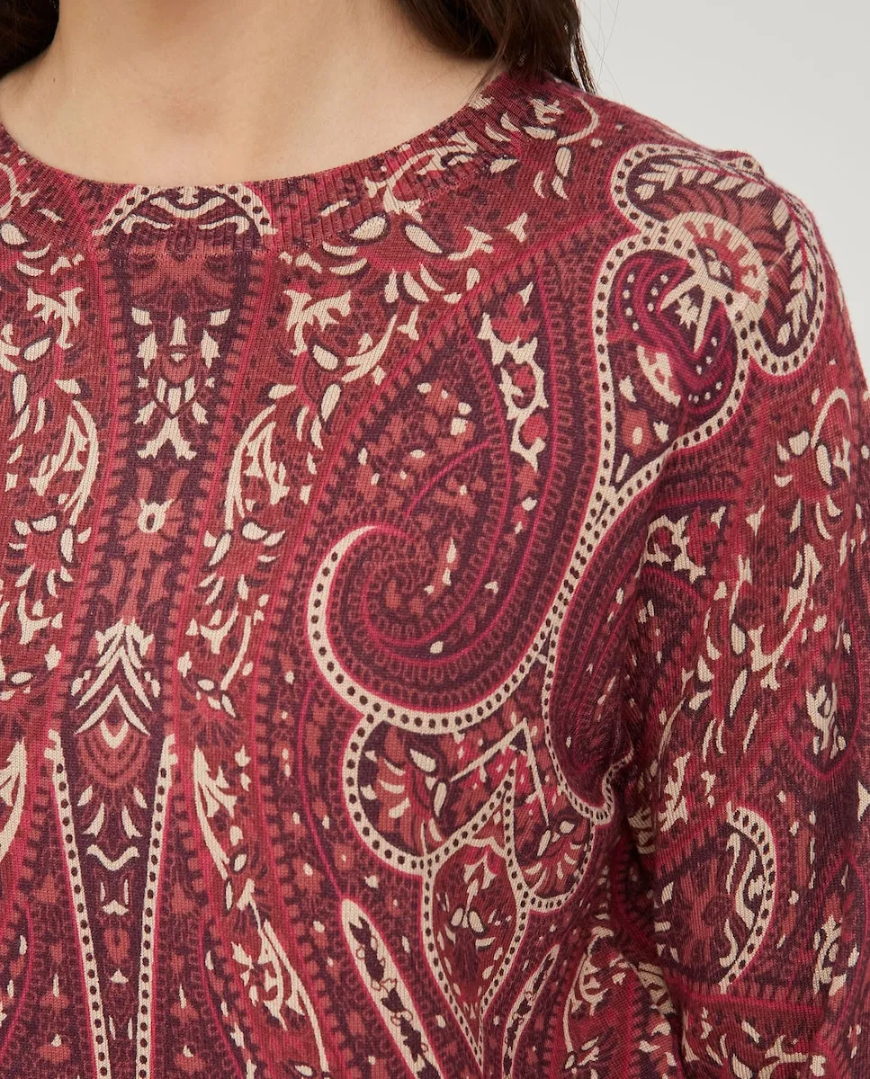 Женский свитер с рисунком пейсли October, гранатовый