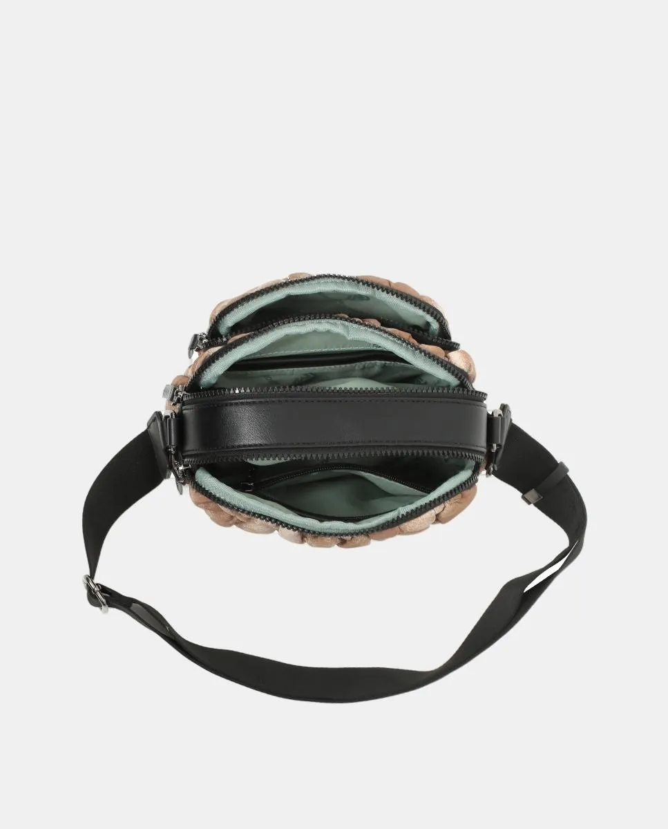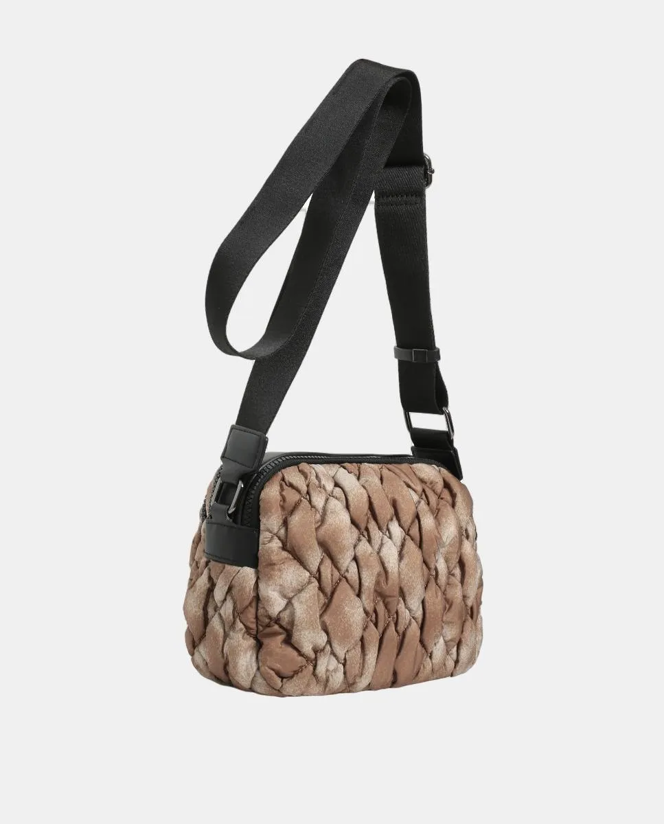Сумка через плечо из стеганого нейлона естественного цвета, ремень через плечо для ношения на плече и через тело, застежка-молния, 2 внутренних кармана и 1 наружный карман.