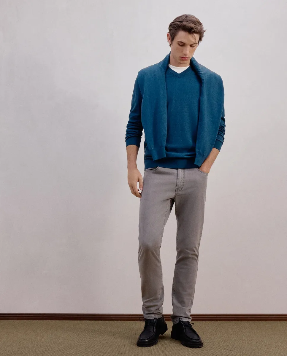 Мужской свитер с V-образным вырезом из хлопка и кашемира.
