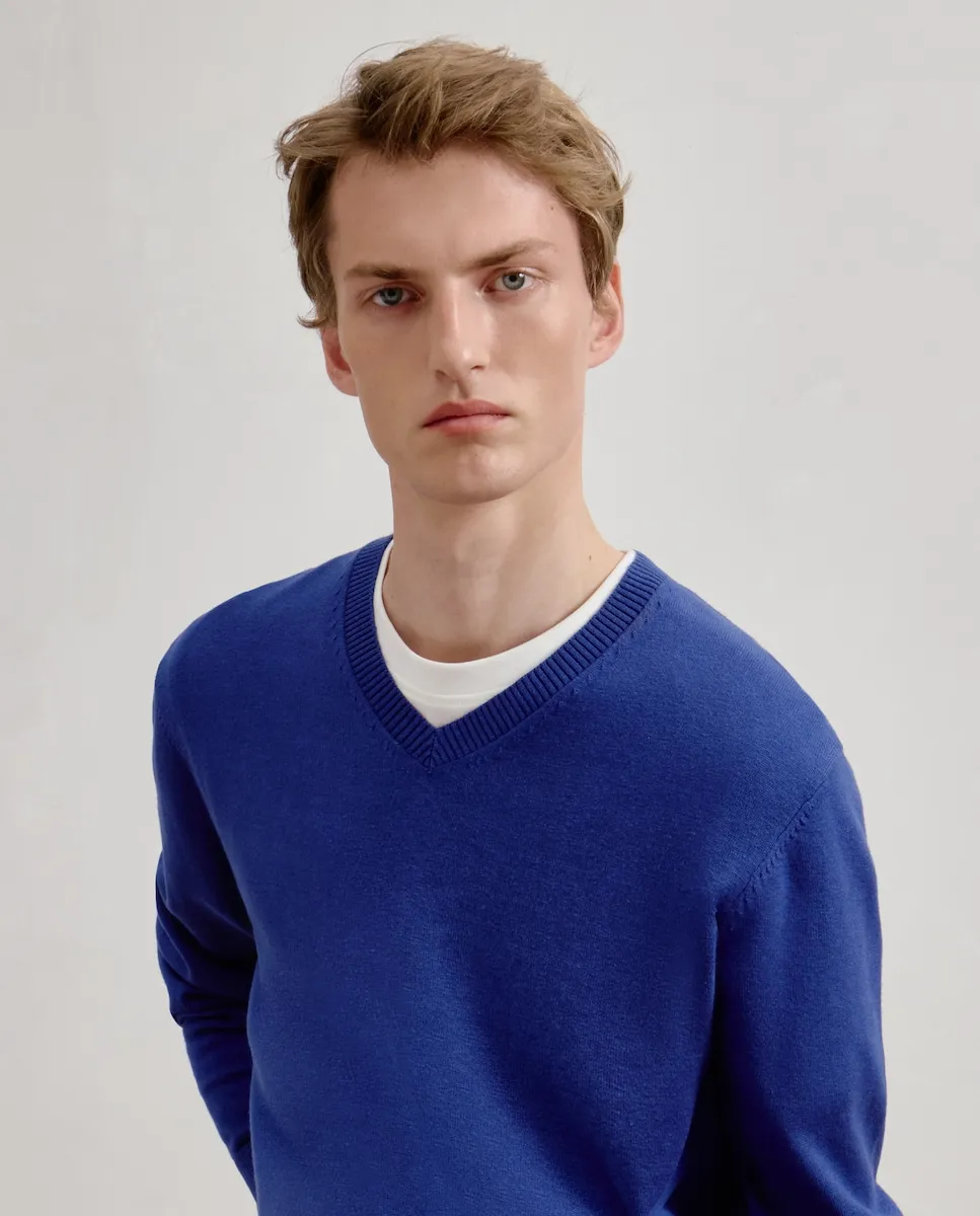Мужской базовый свитер с V-образным вырезом Dustin, индиго