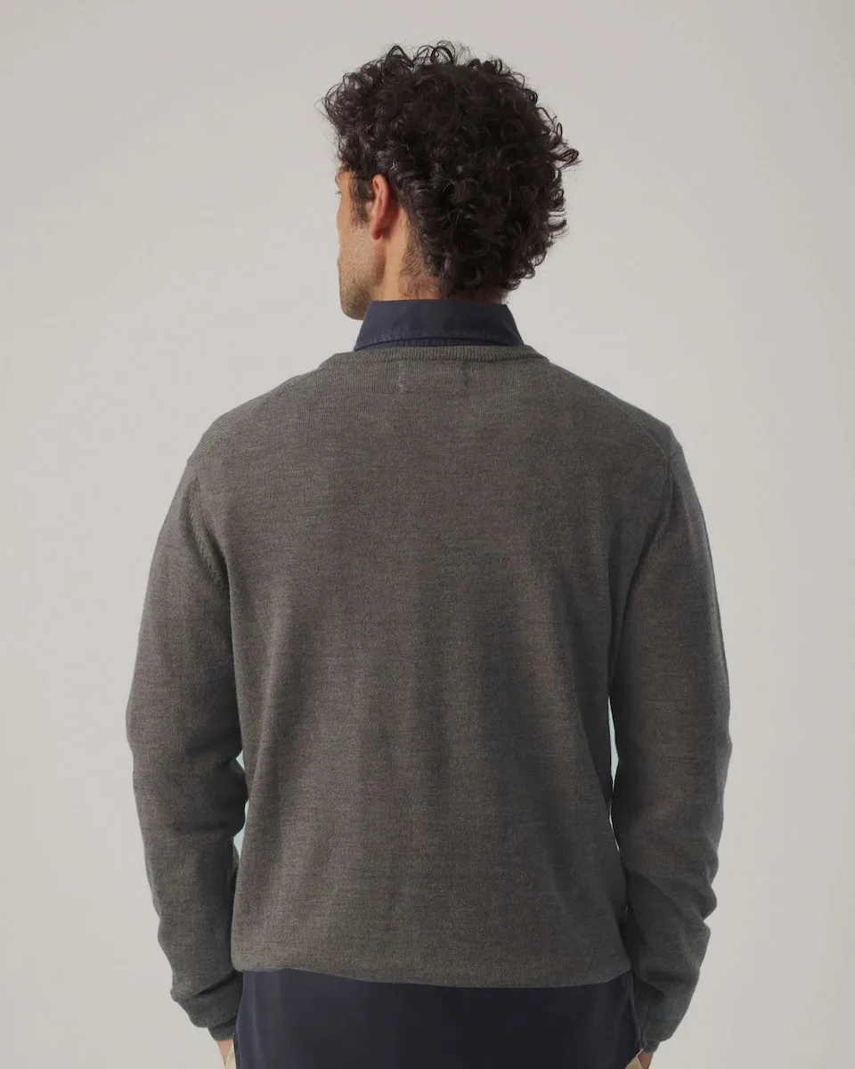 Свитер из 100% мериносовой шерсти. Круглый вырез, резинка на манжетах и вышитый логотип мотоцикла.