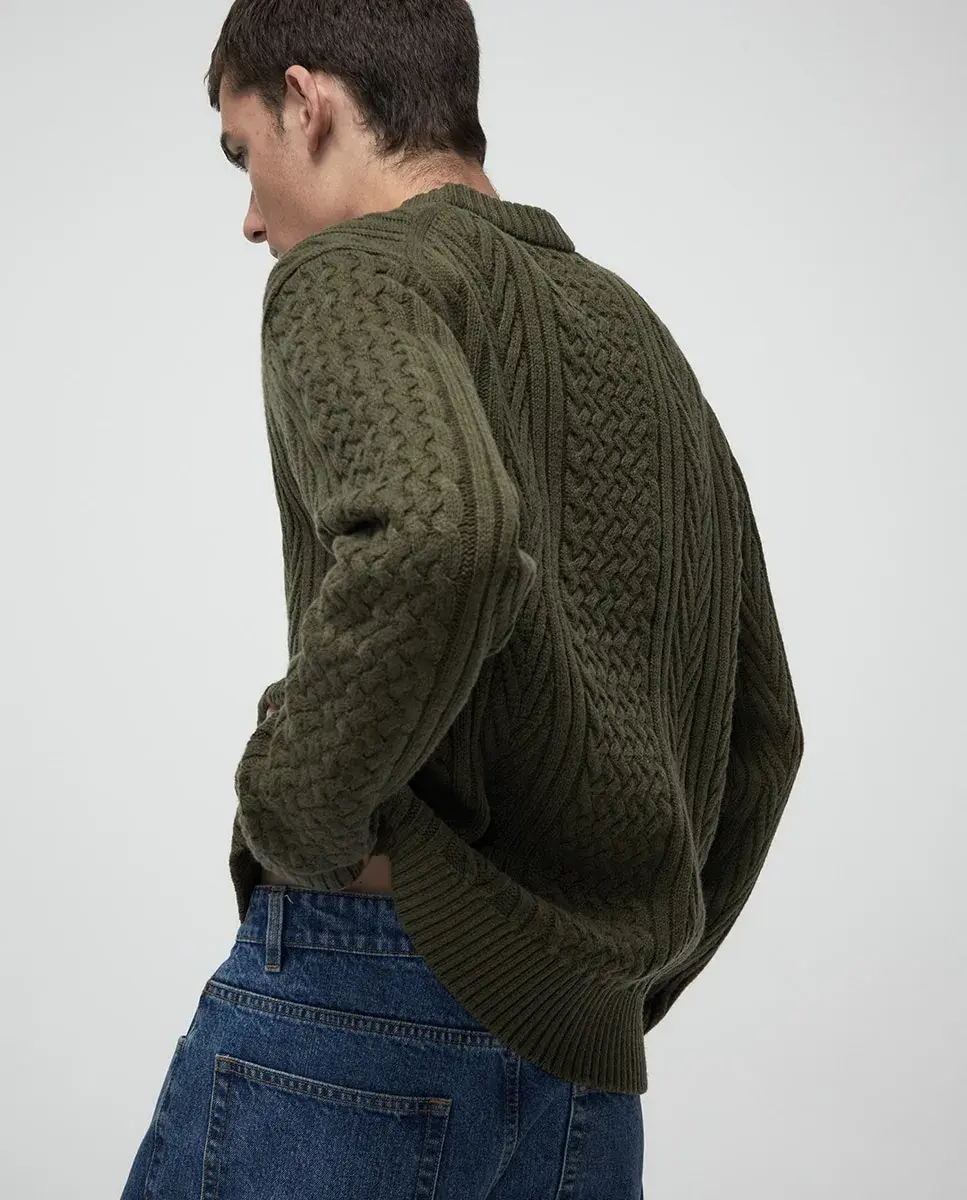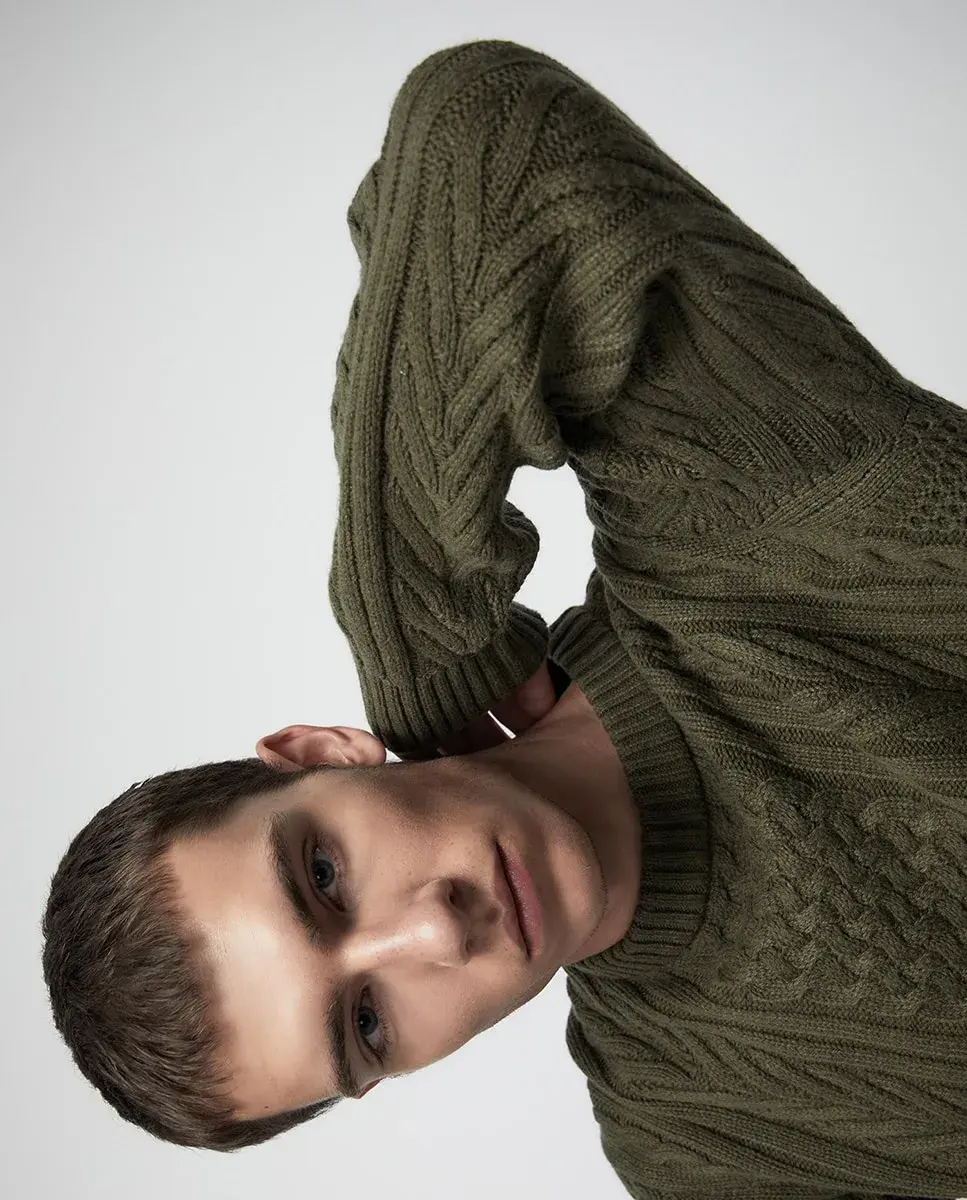 Красный свитер с узором косы Sfera