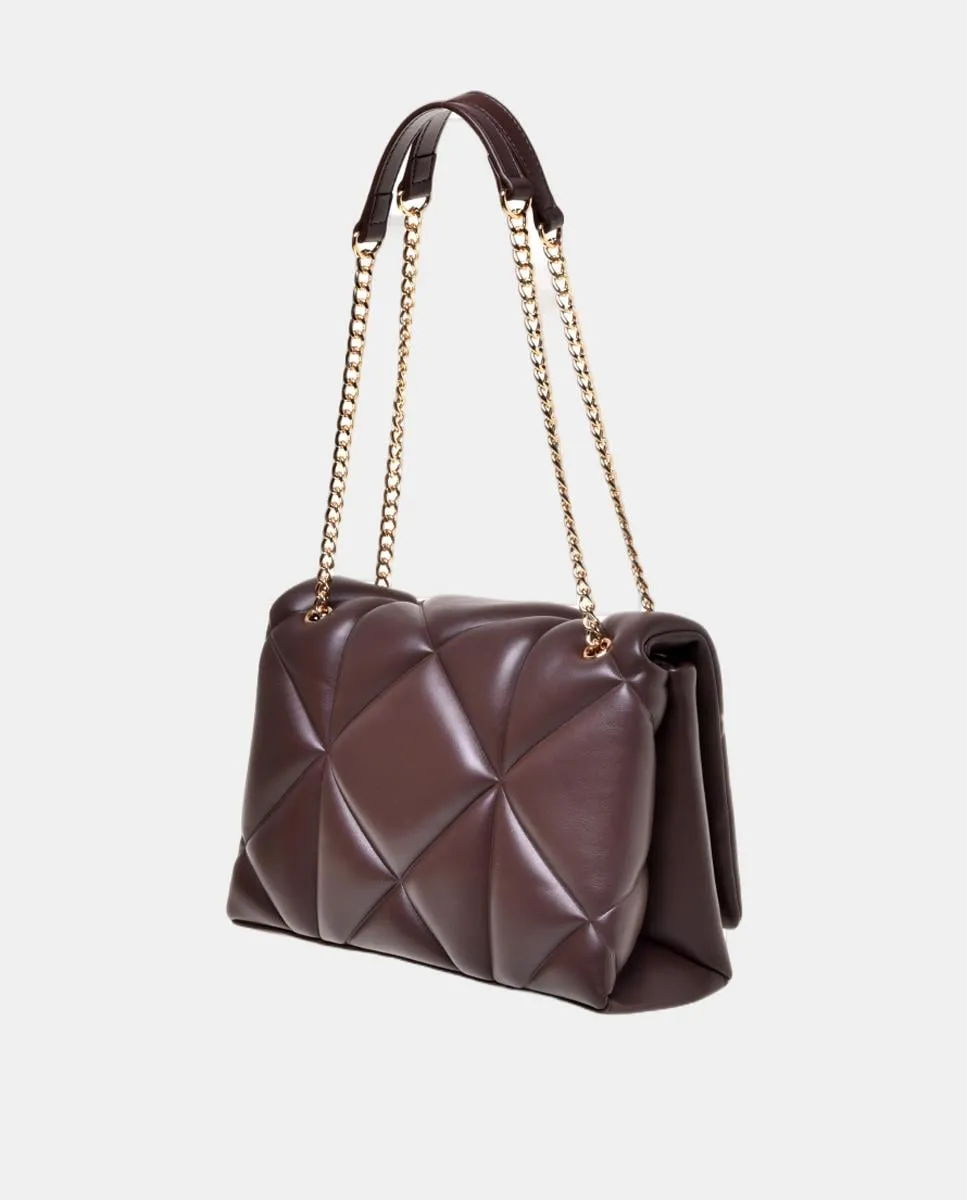 Сумка через плечо. Имеется застежка с клапаном и золотистый логотип бренда на передней части.
