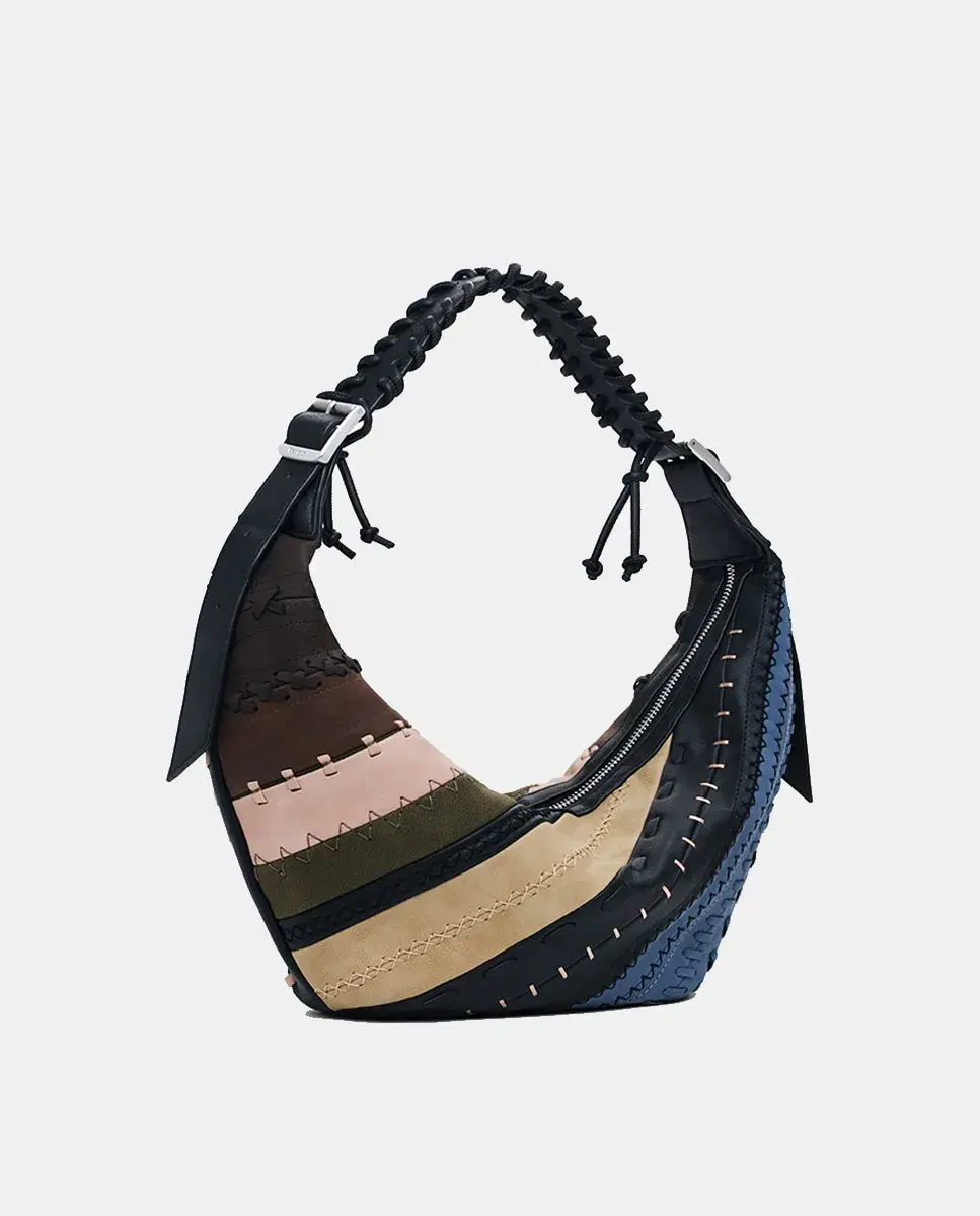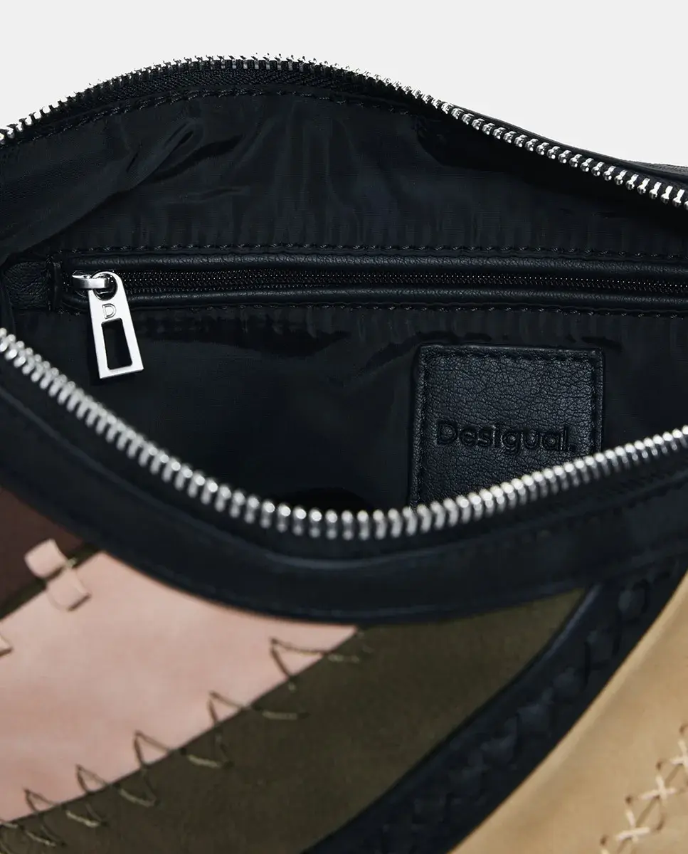 Сумка через плечо среднего размера, выполненная из различных тканей с эффектом кожи в стиле пэчворк, с заменяемыми ручками и застежкой-молнией.