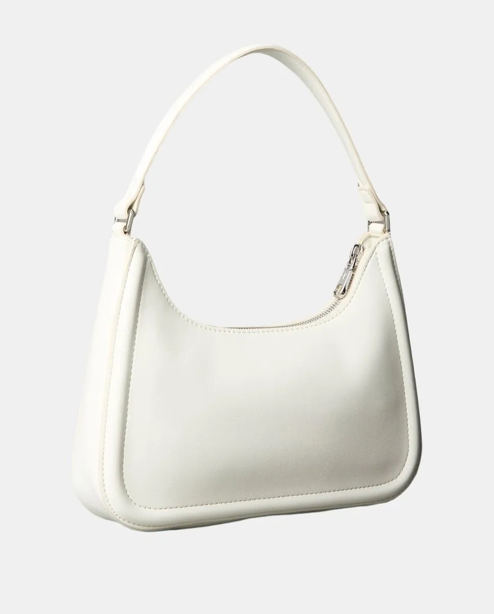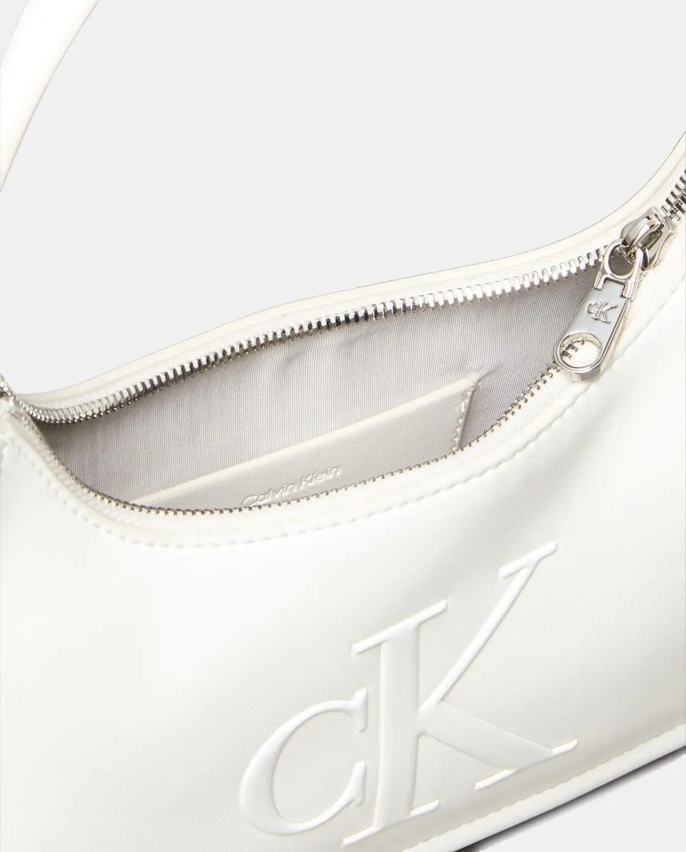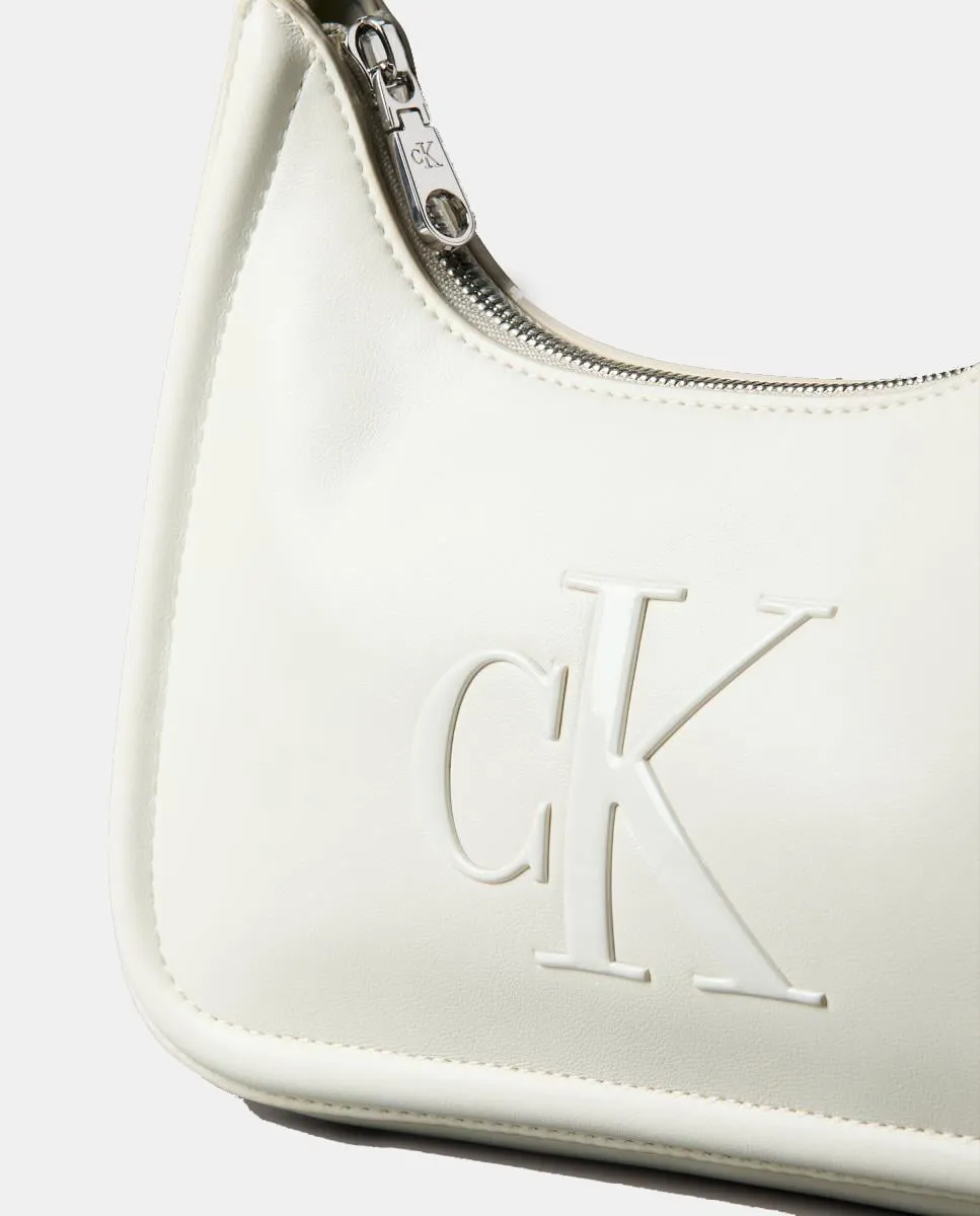 Белая сумка на плечо с логотипом CK в тон. Застежка-молния