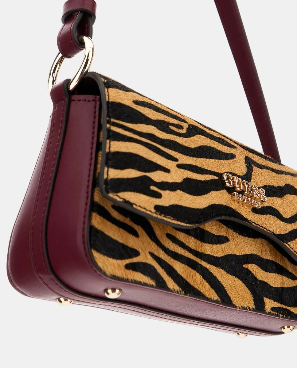 Сумка через плечо модели Domitilla с принтом под животное, клапаном с магнитной застежкой и центральным металлическим логотипом Guess 1981