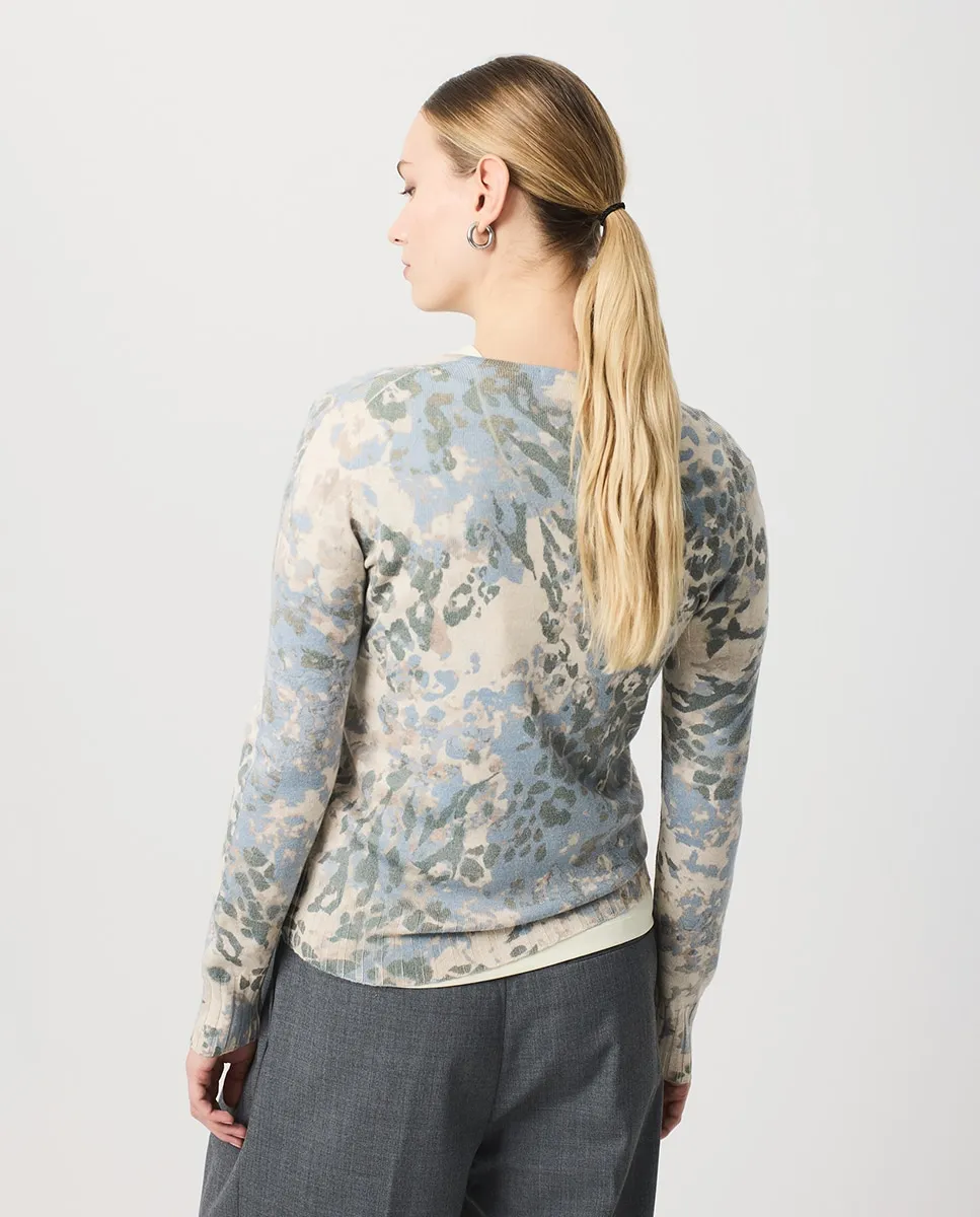 Элегантный и изысканный джемпер, разработанный с целью привлекать внимание ненавязчиво, но смело. Леопардовые пятна распределены по всему джемперу в коричневых и черных тонах, создавая динамичный и захватывающий контраст на мягком фоне.